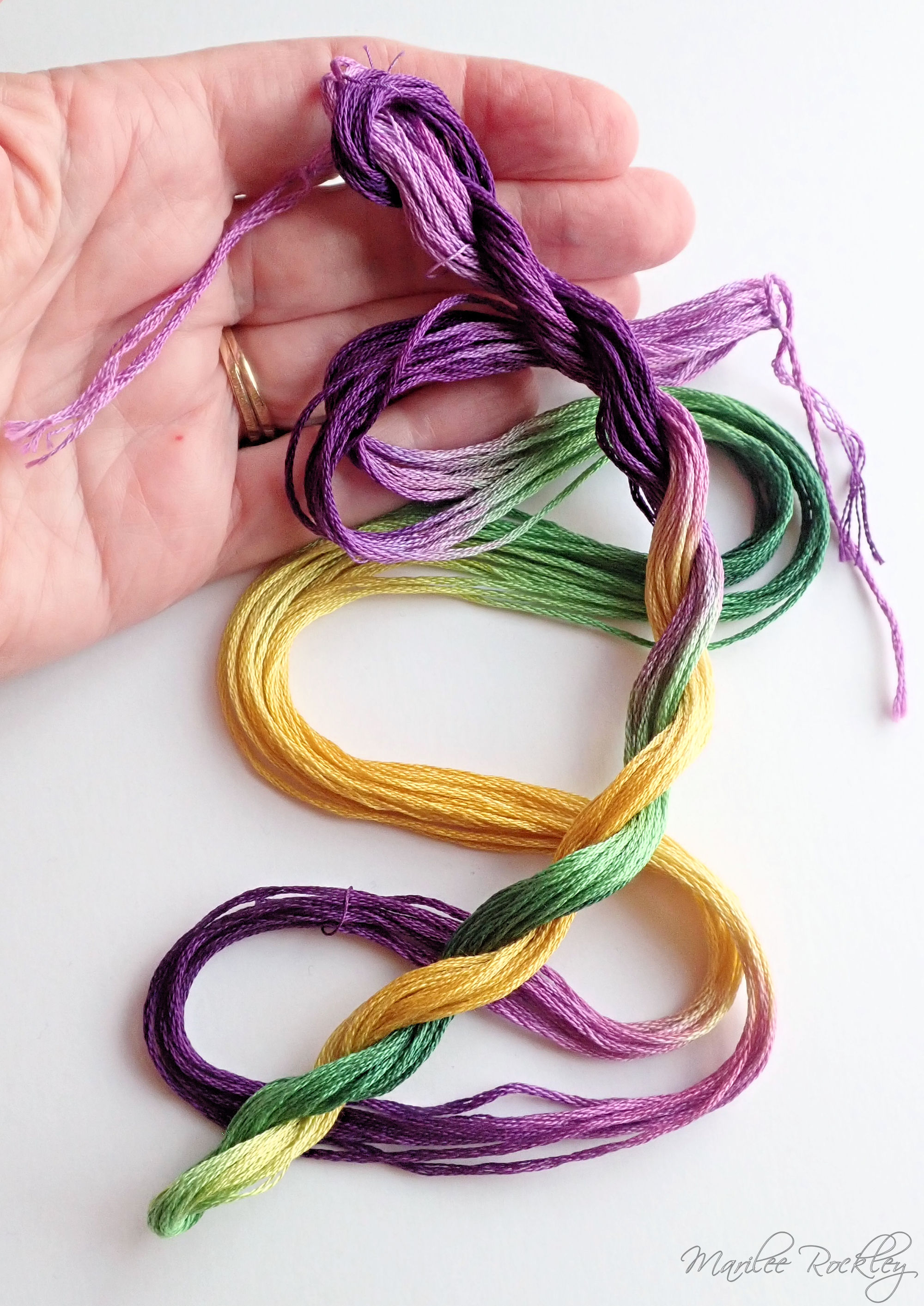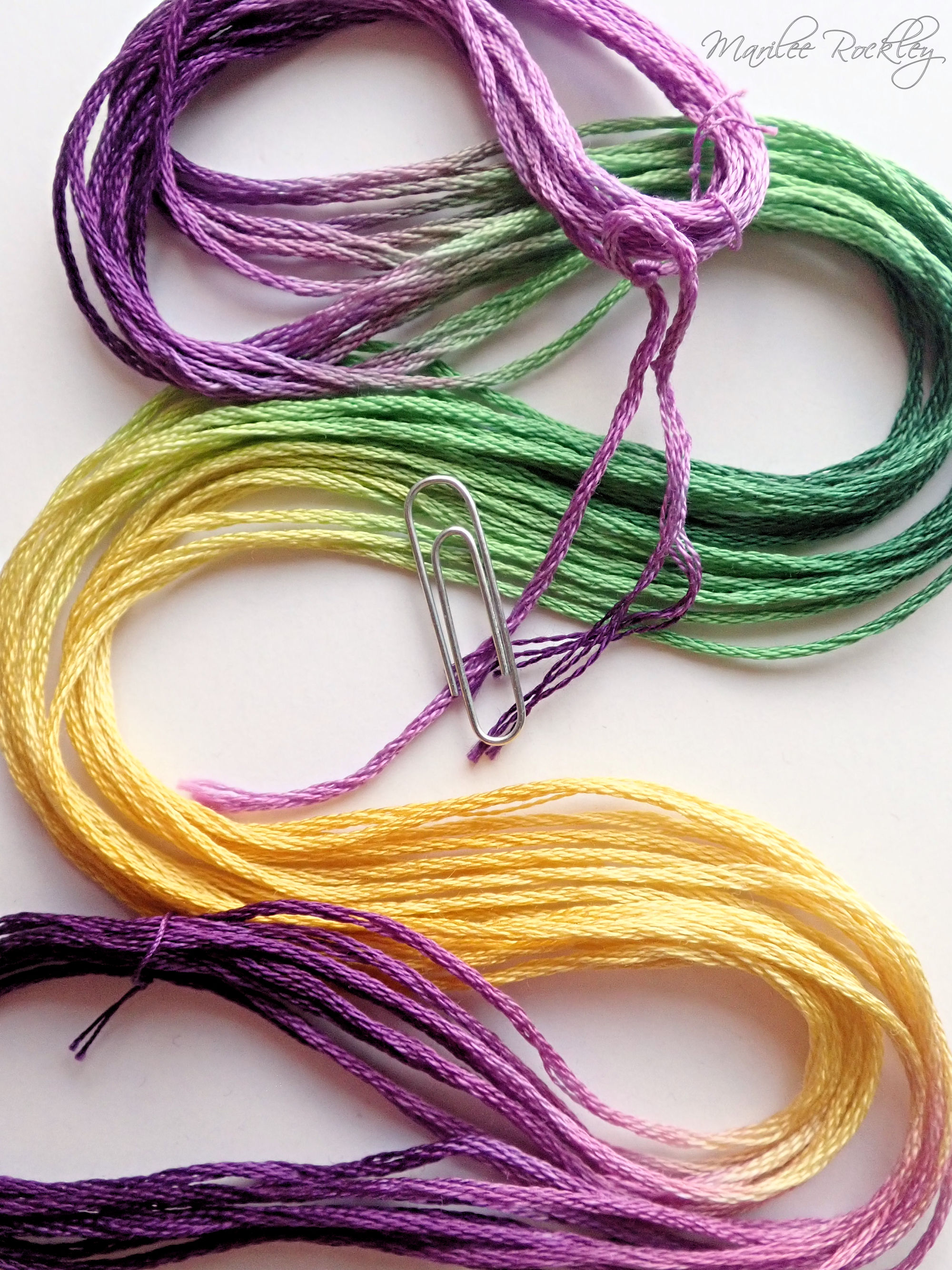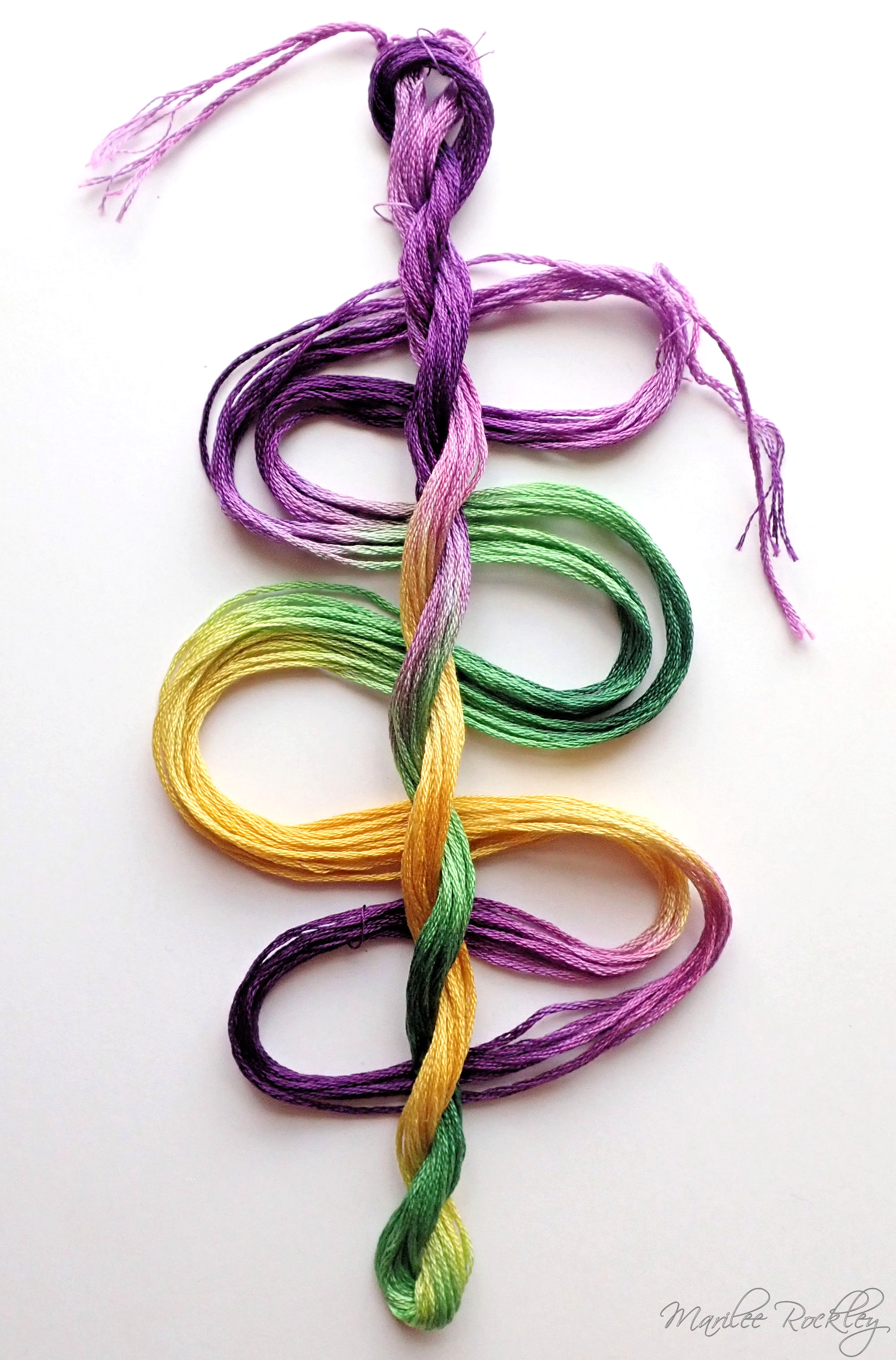 This is an 8 yard skein of divisible 6 strand cotton embroidery floss, which I hand painted with Procion MX dye.