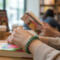 Emerald Tide Cluster Bracelet features layered emerald, teal, and blue-green beads in a textured cluster design