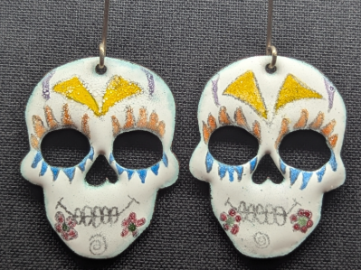 Hand-sawn Sugar Skull Earrings - Original design that will not be repeated!