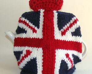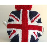 English Rose Tea Cozy. Hand knitted in a machine washable acrylic yarn, this lovely cream tea cozy is adorned with hand knitted roses. It will keep your tea in the teapot whilst giving it a touch of class. Made to fit a medium size 4-6 cup teapot. Hand knitted in Colorado USA.