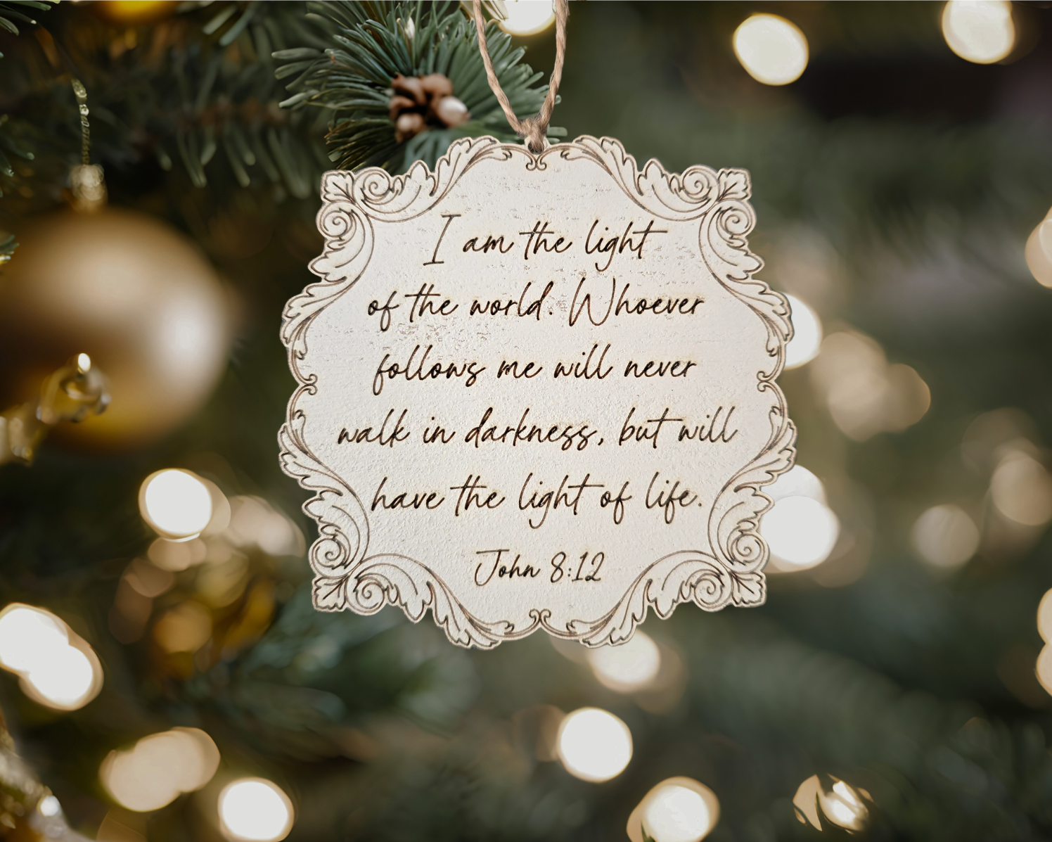 Bring warmth, faith, and timeless beauty to your holiday season with these engraved wooden Bible Verse Ornaments. Thoughtfully designed with carefully chosen scriptures, each ornament carries a message of light, hope, and peace, perfect reminders in a time when encouragement is needed most.