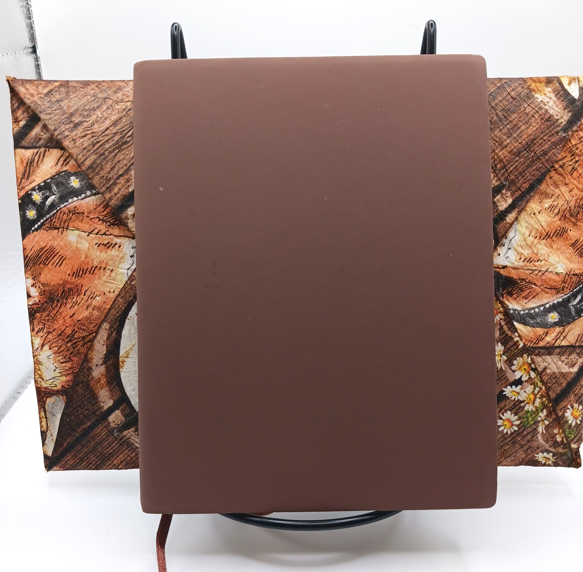 I first made the paper out of several layers of napkins using a solution. Ironing is involved to seal the solution to the layered napkins, it gets messy. I hang them in my art studio on the window blinds using clothes pins to hold them on, they dry overnight. The next day they are as stiff as a board, so I take the iron to them again to flatten, and they are beautiful, a nice 12 by 12 strong paper to do most any kind of art project. I cut and fold to make the envelope and its the perfect size for a journal. People are amazed its made from a napkin.