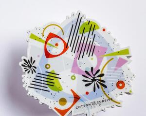 Decorate your computer, water bottle, guitar case, etc., with the bright colors and shapes that play together in this vibrant and fun sticker. All stickers are made from highly durable and thick vinyl to protect from water, sun, and scratches. Indoor/outdoor use.