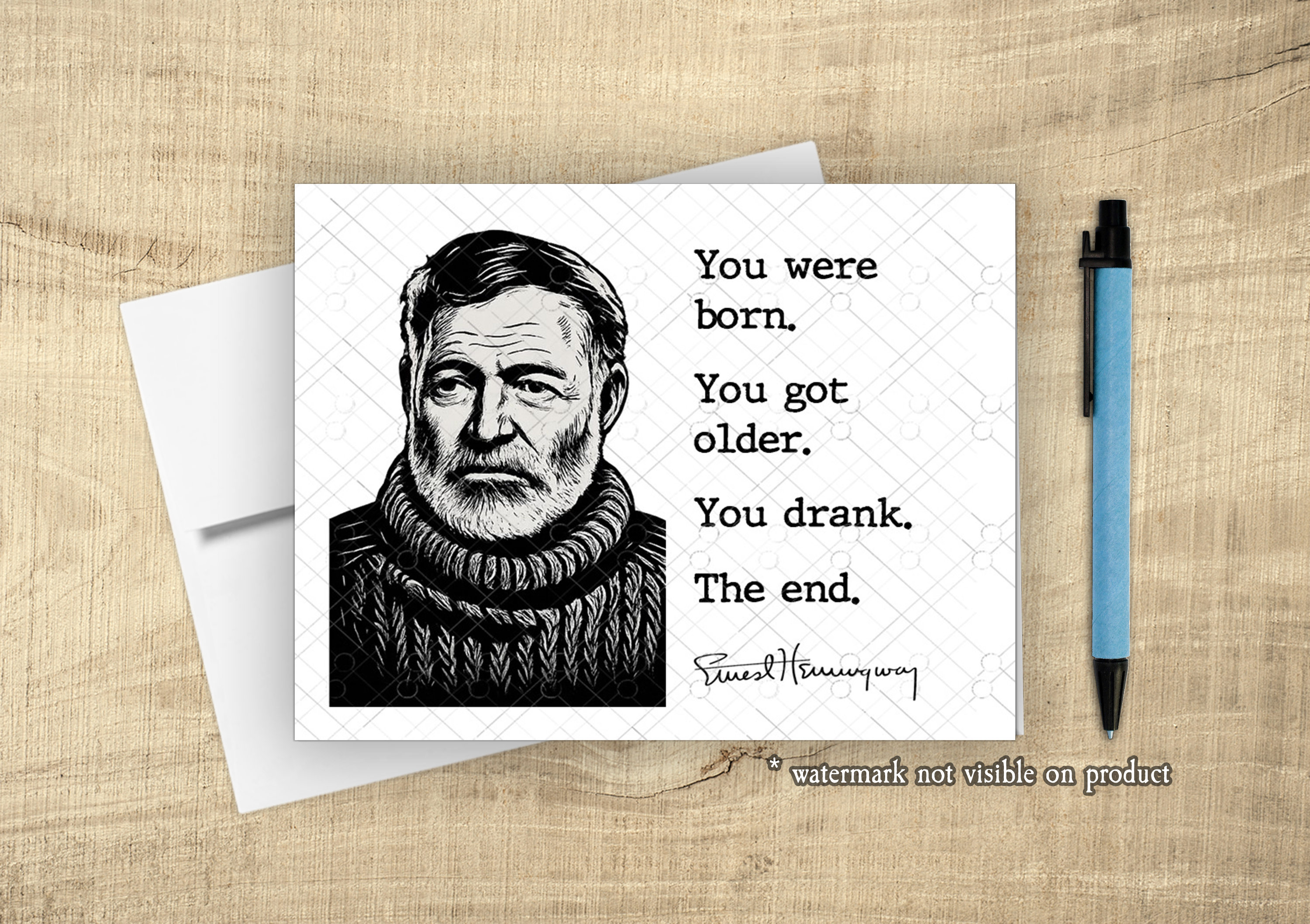 Cut through the fluff with the most Hemingway birthday message ever written. Forget sappy verses and glitter — this card is blunt, bold, and straight to the point (much like Papa himself). Perfect for the friend who prefers whiskey over cake and existential honesty over empty cheer.