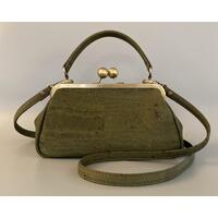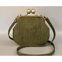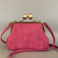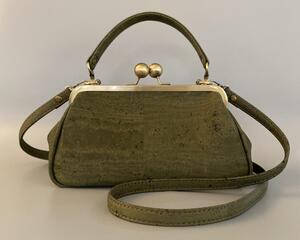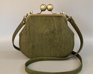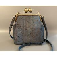 Ethel, a bespoke custom-designed kisslock saddlebag, is sure to add a delightful touch of vintage flair to any outfit. The uniquely beautiful look of the cork leather lends itself to the vintage vibe of this one-of-a-kind bag. Ethel boasts an oversized antique brushed bronze kisslock closure, topstitching details along the rounded gusset, an interior slip pocket and a crossbody strap. Each piece is carefully crafted by hand in my home studio, ensuring a unique and individual touch.