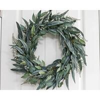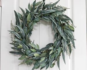 Wreath measurement from leaf tip to leaf tip: 21 inches. Wreath depth: 5 inches