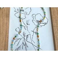 • Composed of colored glass and plastic beads + Blue Apatite + Green Apatite + Aventurine crystal beads
