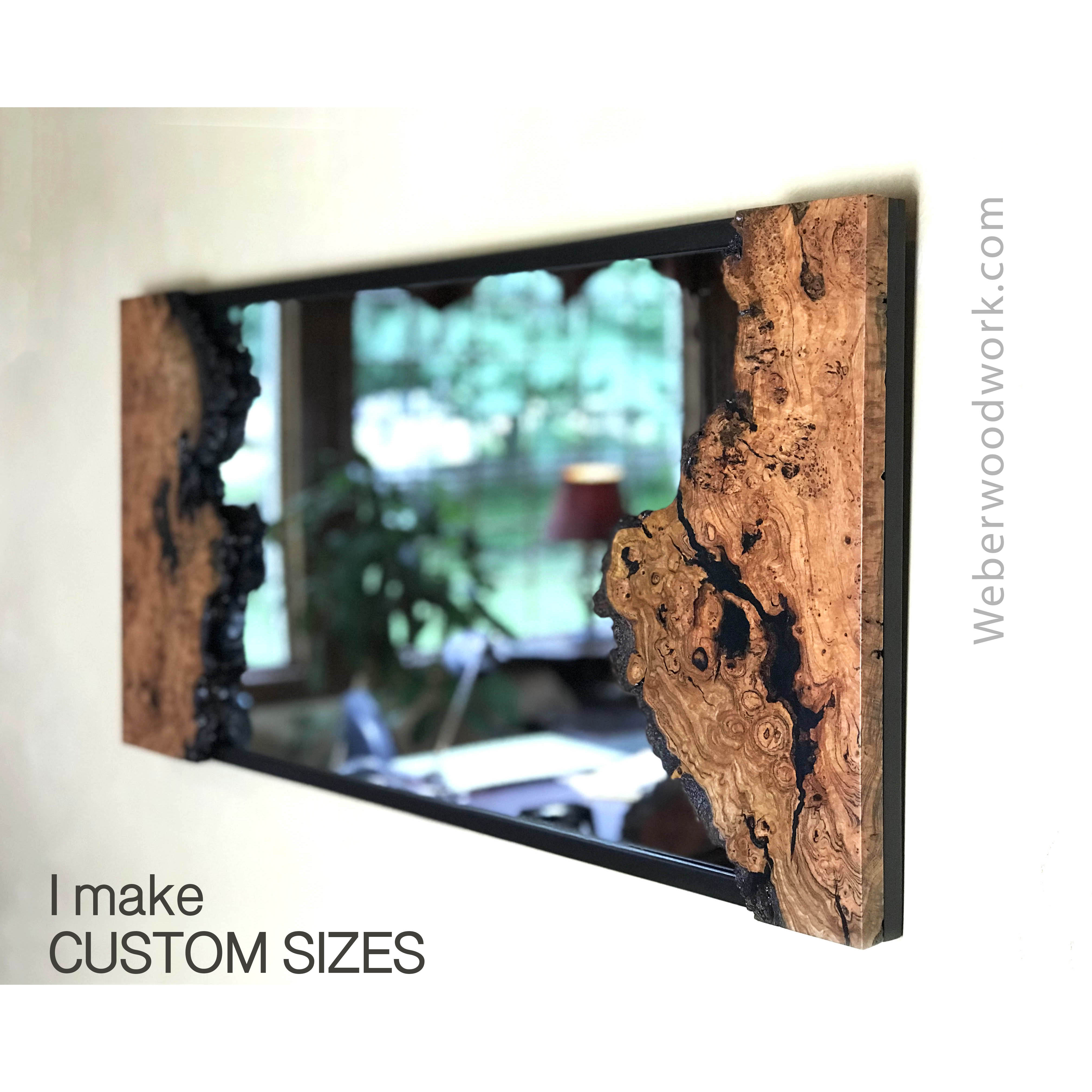These handmade Live Edge Cherry burl mirrors are perfect for dressing up any wall