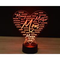 Laser engraved acrylic that sits in an LED lamp base. Color can be changed by button on base or with provided remote. Lamp base can run off of provided micro USB cable or 3x AA batteries. This listing includes the lamp base and the engraved acrylic.