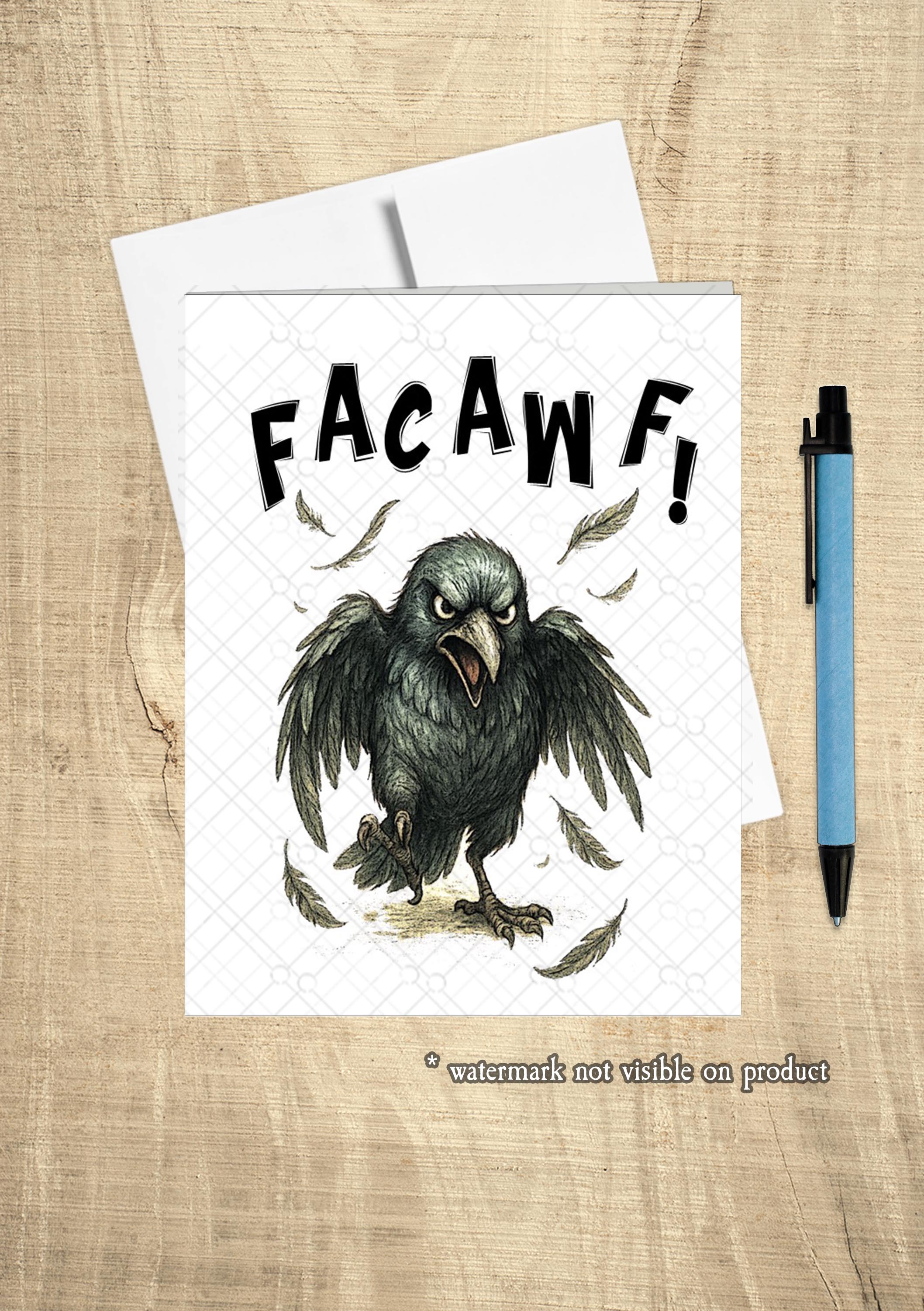 Ever feel like flipping the bird... with a bird? Say hello to your new spirit animal: this furious, disheveled crow who is 1000% done and ready to "facawff" into the abyss (or at Susan from HR). Perfect for breakups, quitting jobs, bad days, or anytime you just need to scream into the void in greeting card form.