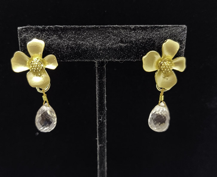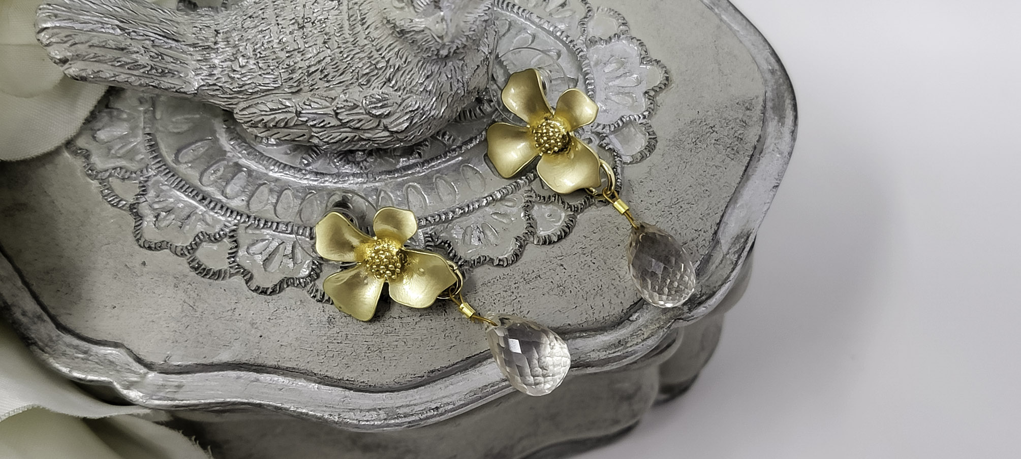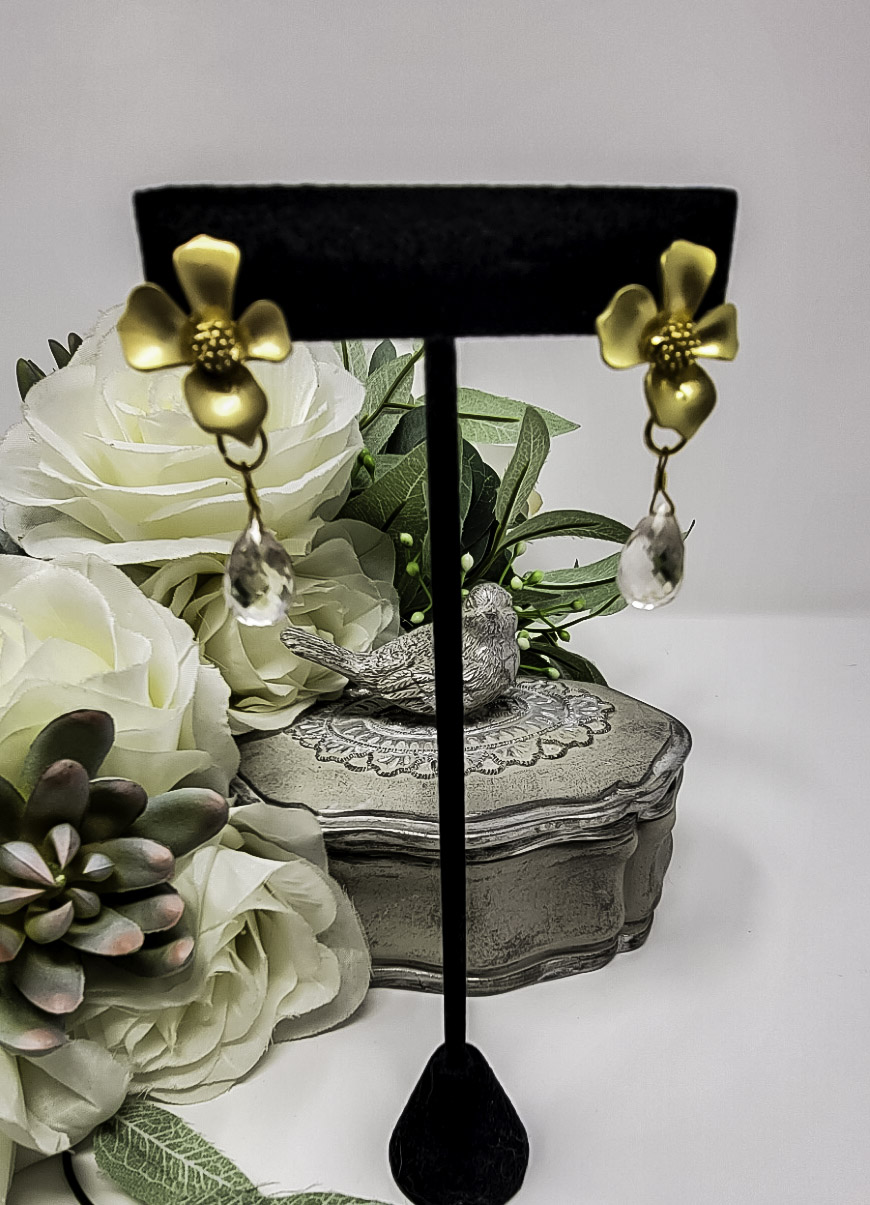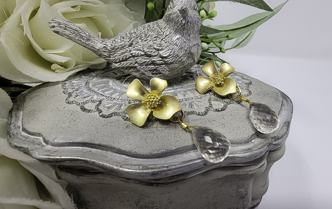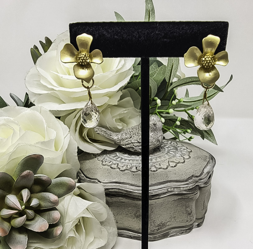 ✨ These Wayward Sparrow Studio Blossom and Faceted Quartz Drop Earrings are a stunning addition to any jewelry collection. They combine elegance with a unique design, making them perfect for special occasions. The gold-plated post and back add a luxurious touch. Ideal for those who love unique and elegant jewelry.