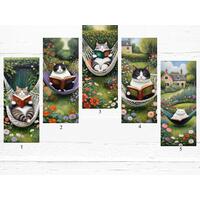 Enter the enchanting world of whimsical fairies with these five beautiful bookmarks, each featuring colorful and detailed artwork that will add a touch of magic to your reading experience. These delightful fairies are captured in various settings, from sitting atop a castle to relaxing among the branches of majestic trees, all while engrossed in the joy of reading a book.
