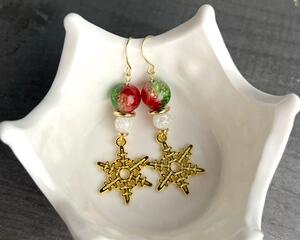 Happy Merry Christmas snowflake crackle beaded dangle earrings