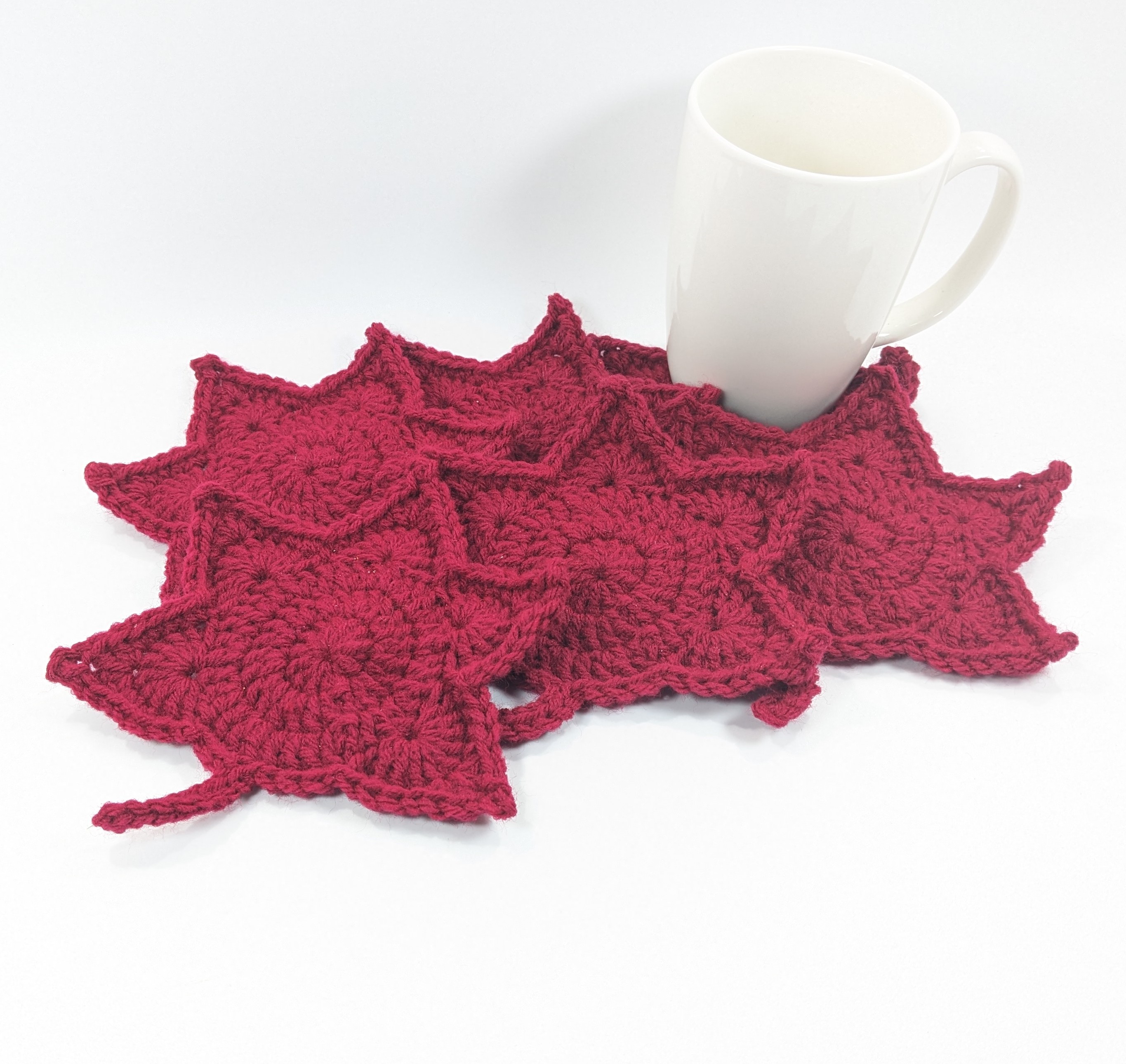 Also this Fall Leaf Dee[-Red Coasters are hand crochet with acrylic yarn.