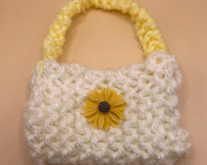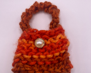 First, I always choose a yarn color that “speaks to me.” Next comes hand knitting the base of the bag followed by adding a strap - also hand knitted. The last step (my favorite) is adding the embellishment! Through the process I imagine the child receiving this doll accessory. That always puts a big smile on my face. Enjoy❣️