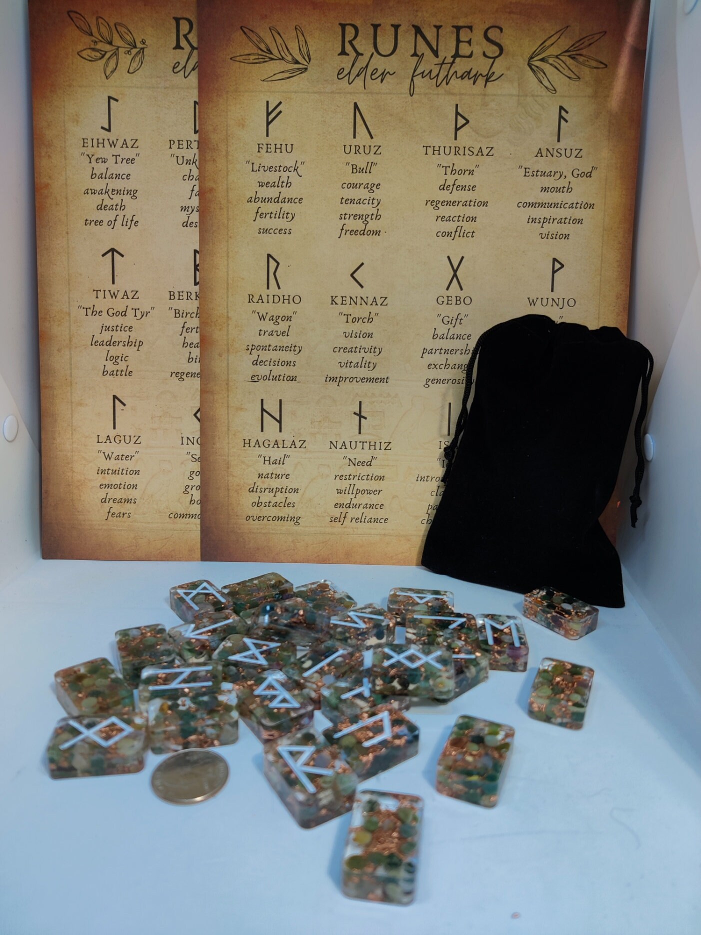 *The set includes 24 hand painted runes with 2 blank runes. It comes in a beautiful black velvety bag and an instruction and care sheet. Also included is a sheet giving you the meanings of each rune. *The set includes extra blank tile so that you can carry them with you when needed, or to keep you connected to your set.