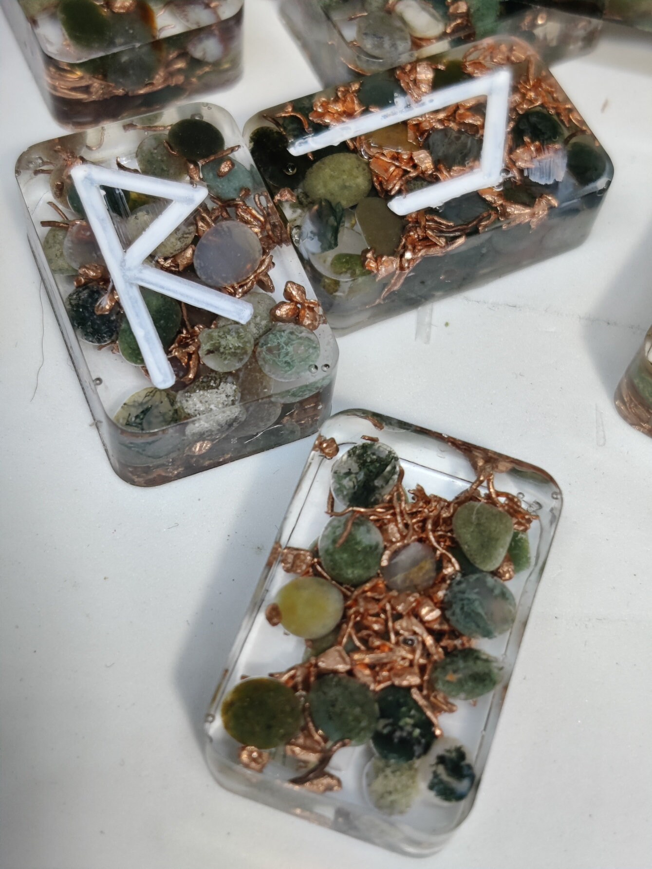 ***do not leave your rune in sunlight or UV rays for an extended period of time. is can cause the resin to get cloudy and can fade some crystals.