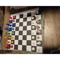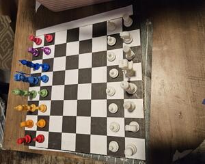 I custom-designed each piece on my computer on a 3D modeling software. I then print them out on my 3D printer. I design and print the chess boards to match the theme of the set. I apply the board along with a complementary design element to a hard surface.