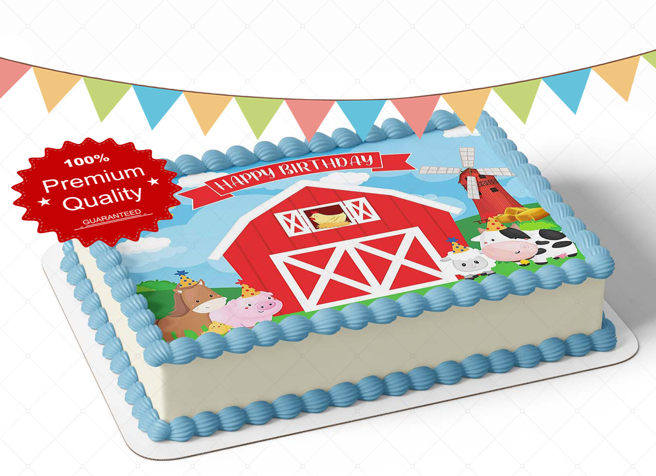 Farm Animals Birthday Pic Cow Sheep Horse Chicken Edible Image Themed Edible Birthday Party Cake Topper Sheet Edible Sticker Decal
