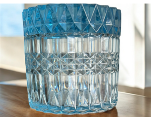 A baby blue vinyl overlay on metal says it all with simple charm.