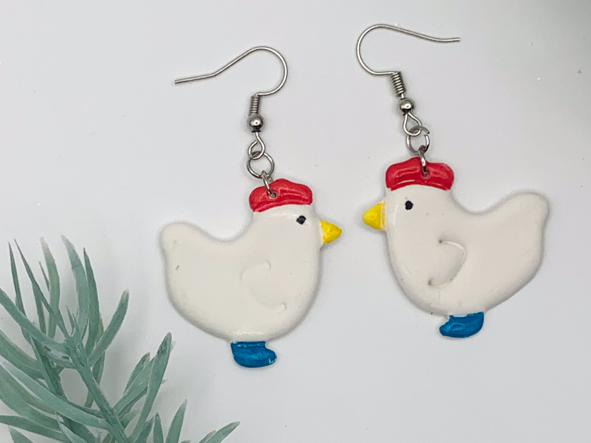 Add a playful touch to your look! These adorable chicken earrings feature bright red combs, sunny yellow beaks, and cheerful blue boots. Perfect for anyone who loves farmhouse charm and quirky accessories.