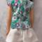 Three pieces, two outfits. Top and skirt or top and shorts.