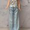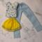 So cute for spring and summer! The top has hook and loop fastener in the back. The skirt has an elastic waist. The pants also have elastic in the waist.