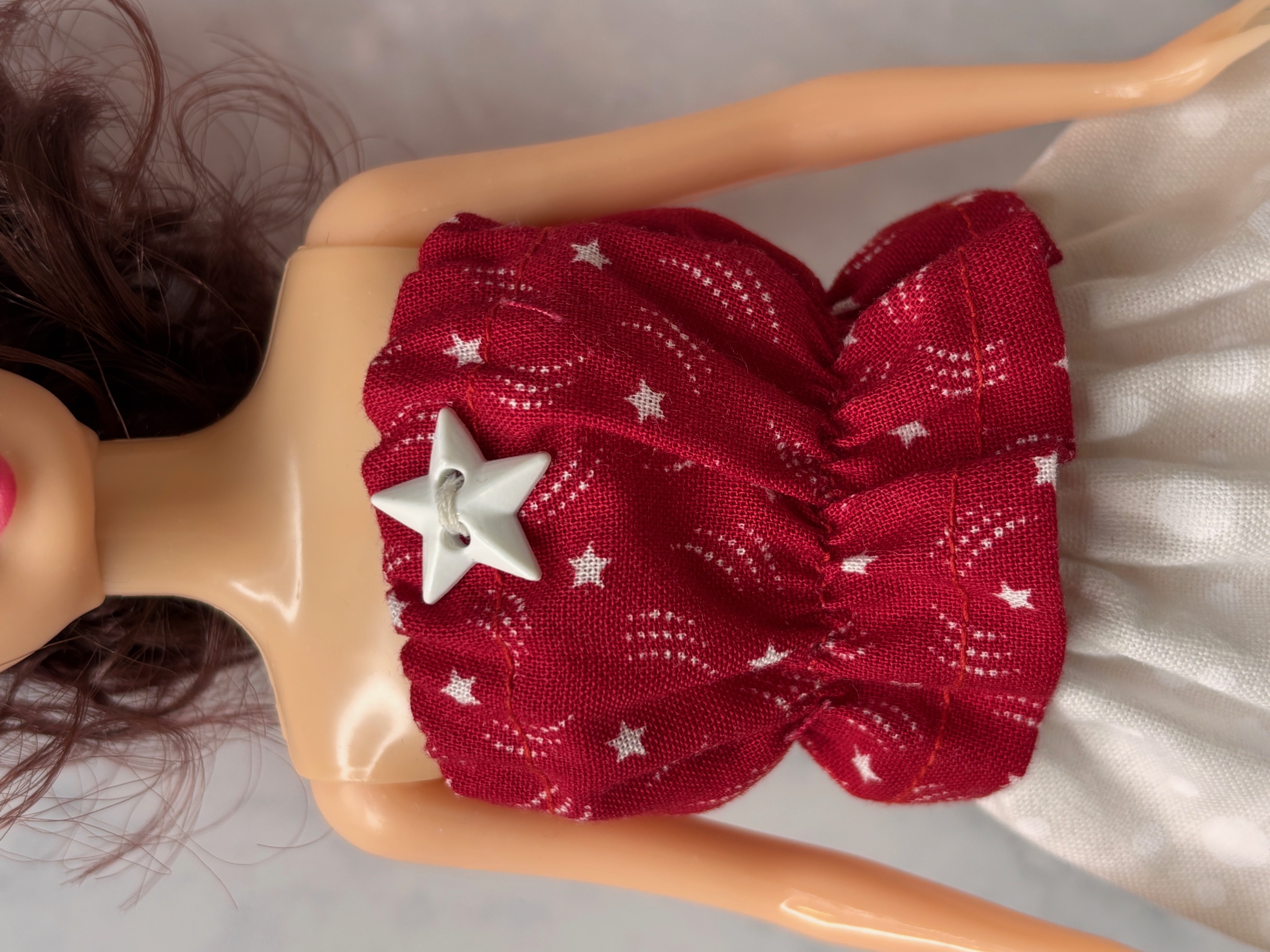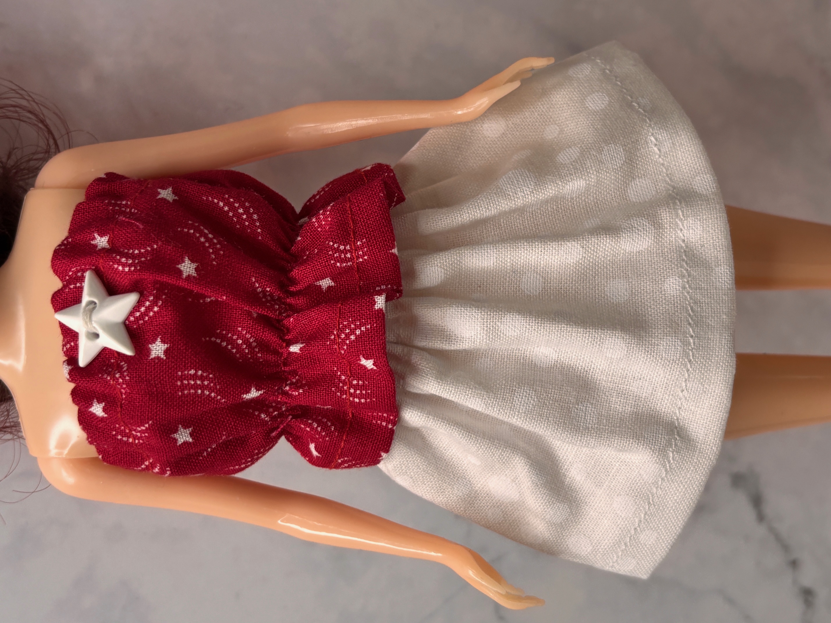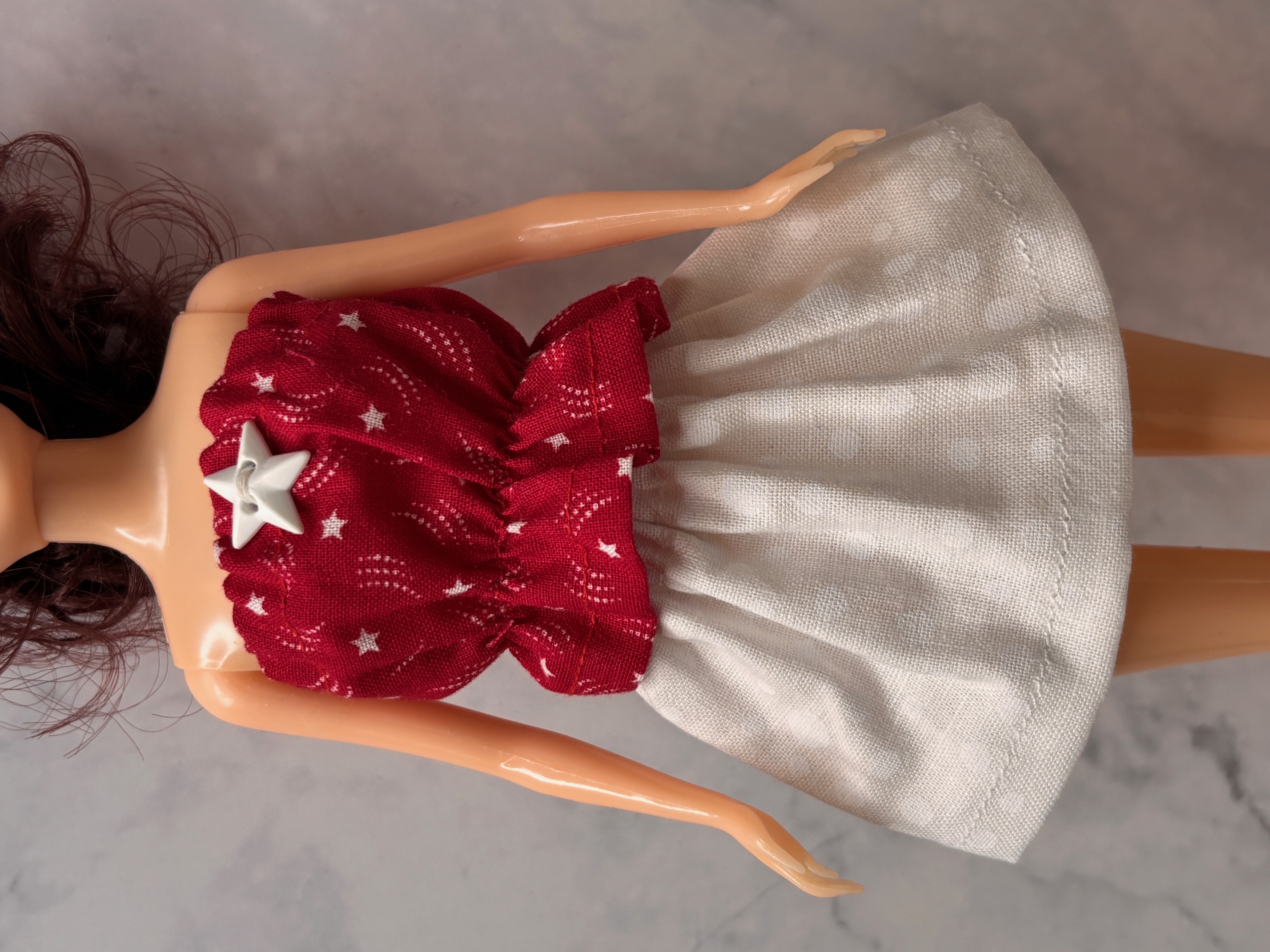 Fashion doll clothes, Skirt and top for an 11-1/2" Fashion doll, White skirt, red and white top. Doll Clothes for small fingers