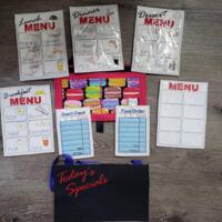 This restaurant set is great for pretend play, and would make a great addition to a play kitchen.