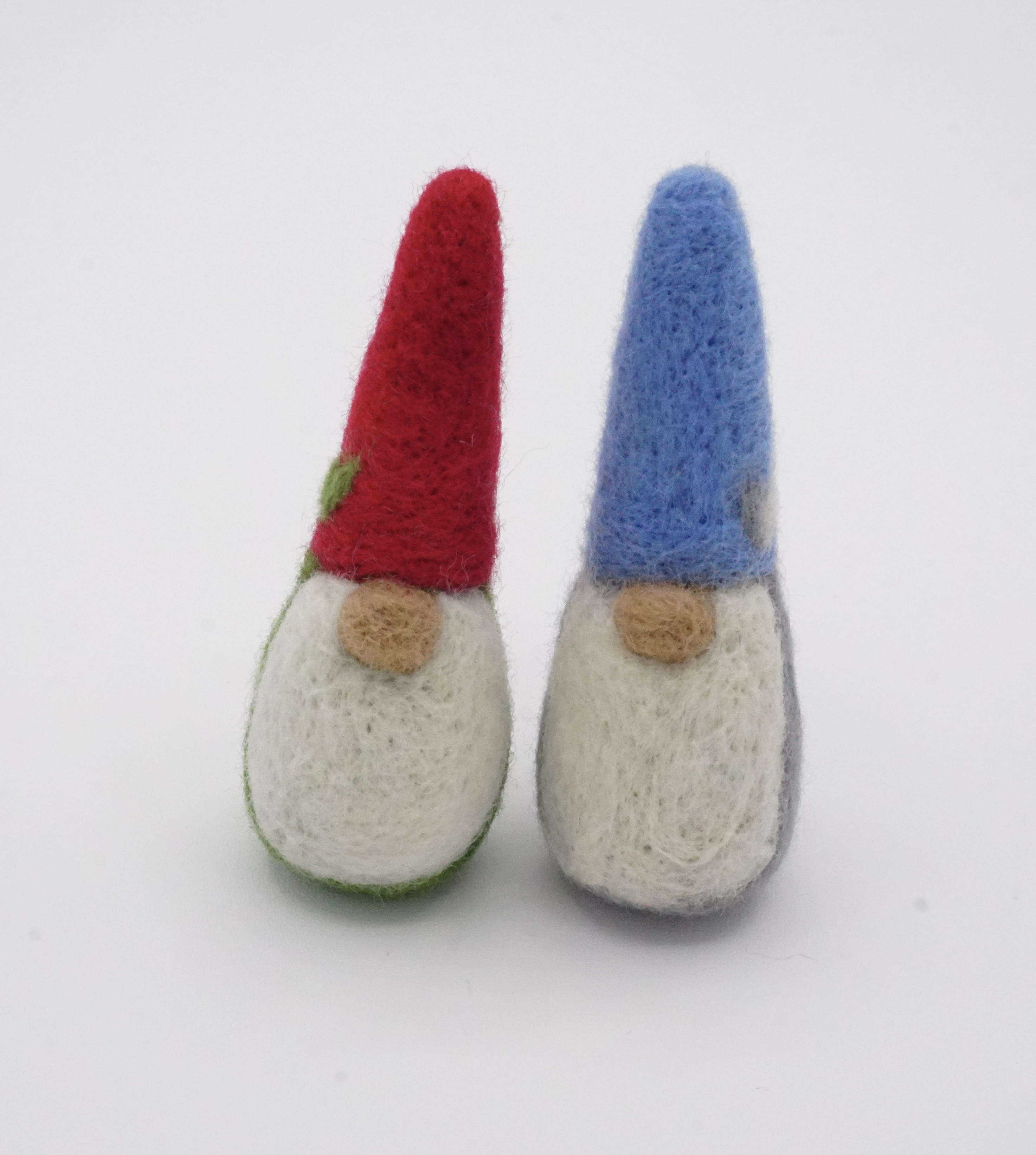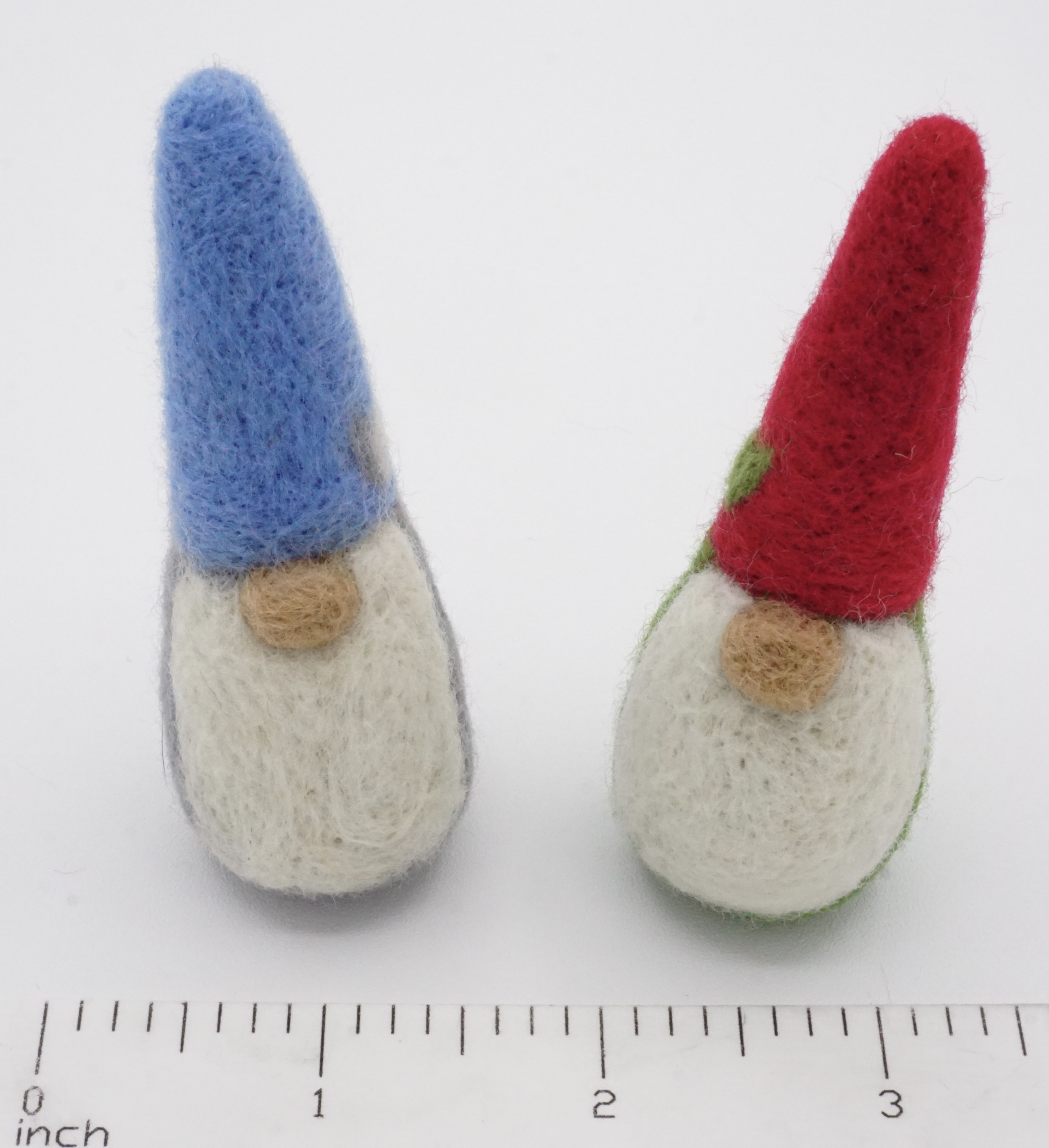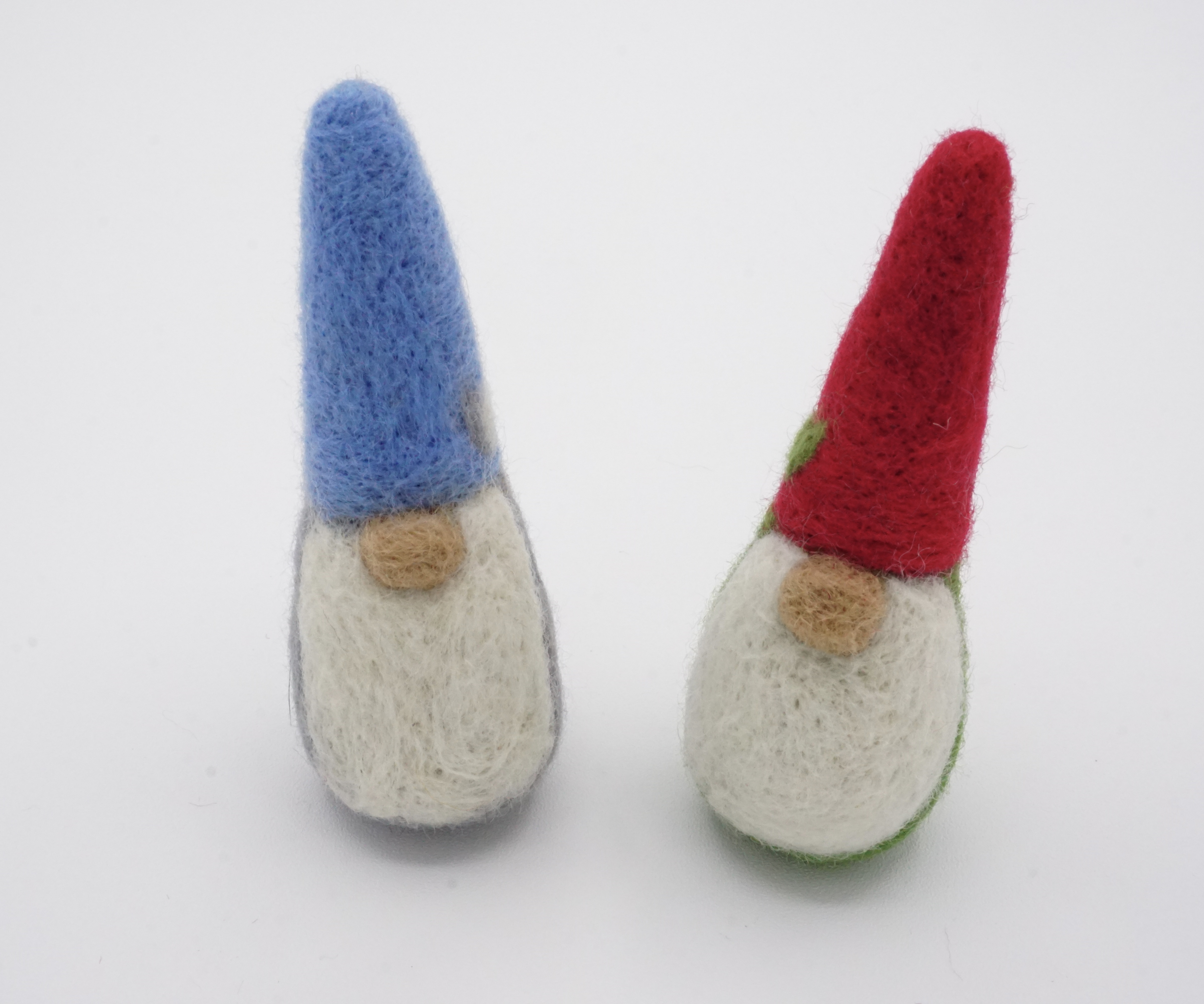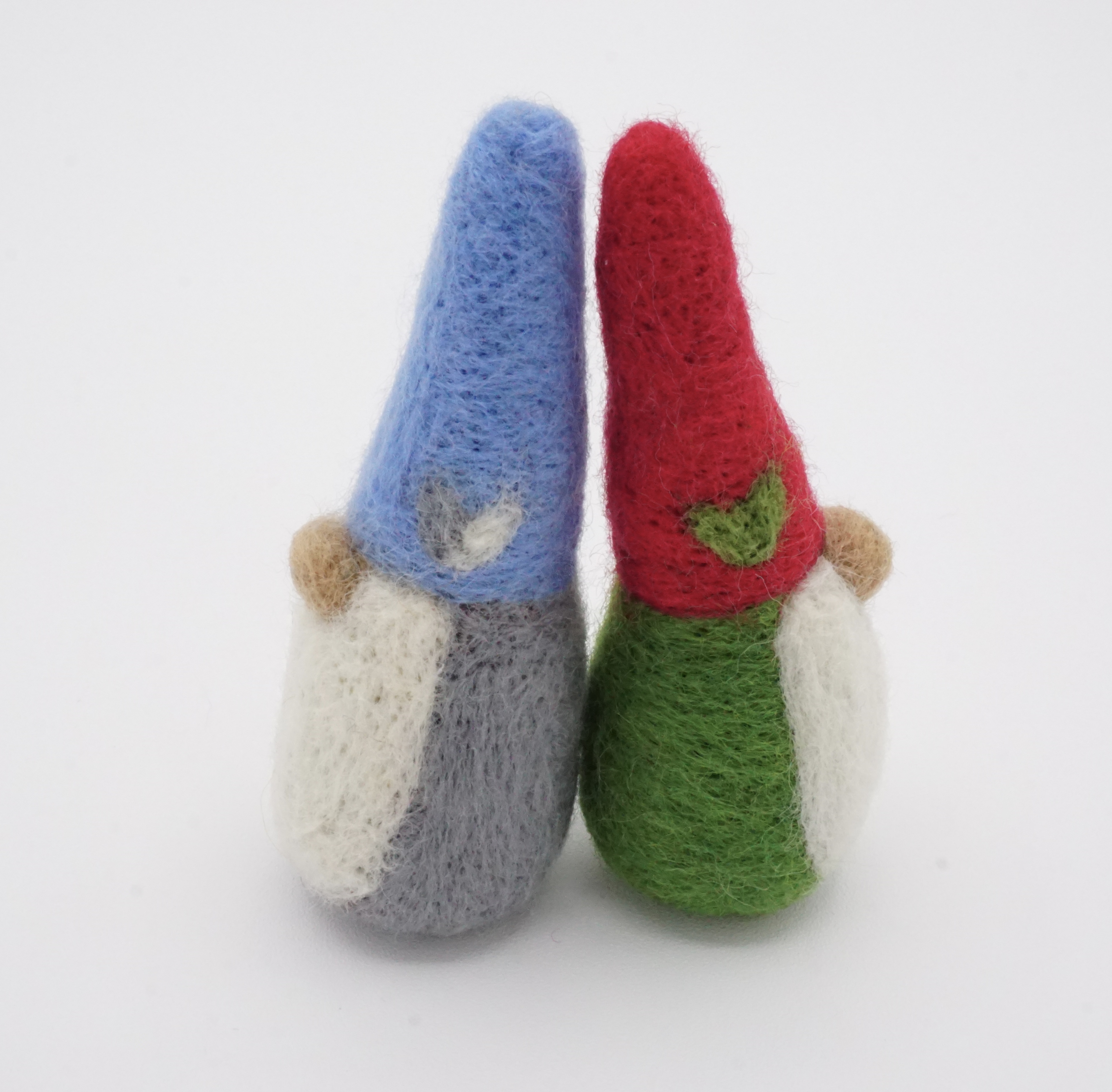 Insipre your cats playful spirit with these silly pair of Gnomes. Made to be batted, kicked, and cuddled with. Made with !00% natural merino wool, none-toxic dyes that give it a colorful touch and a small jingle bell inside each Gnome to create a sound when played with. Crafted for feline entertainment!