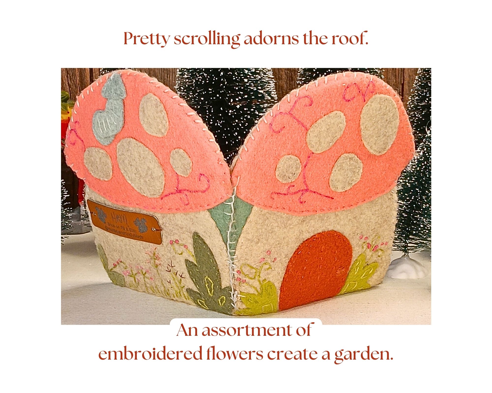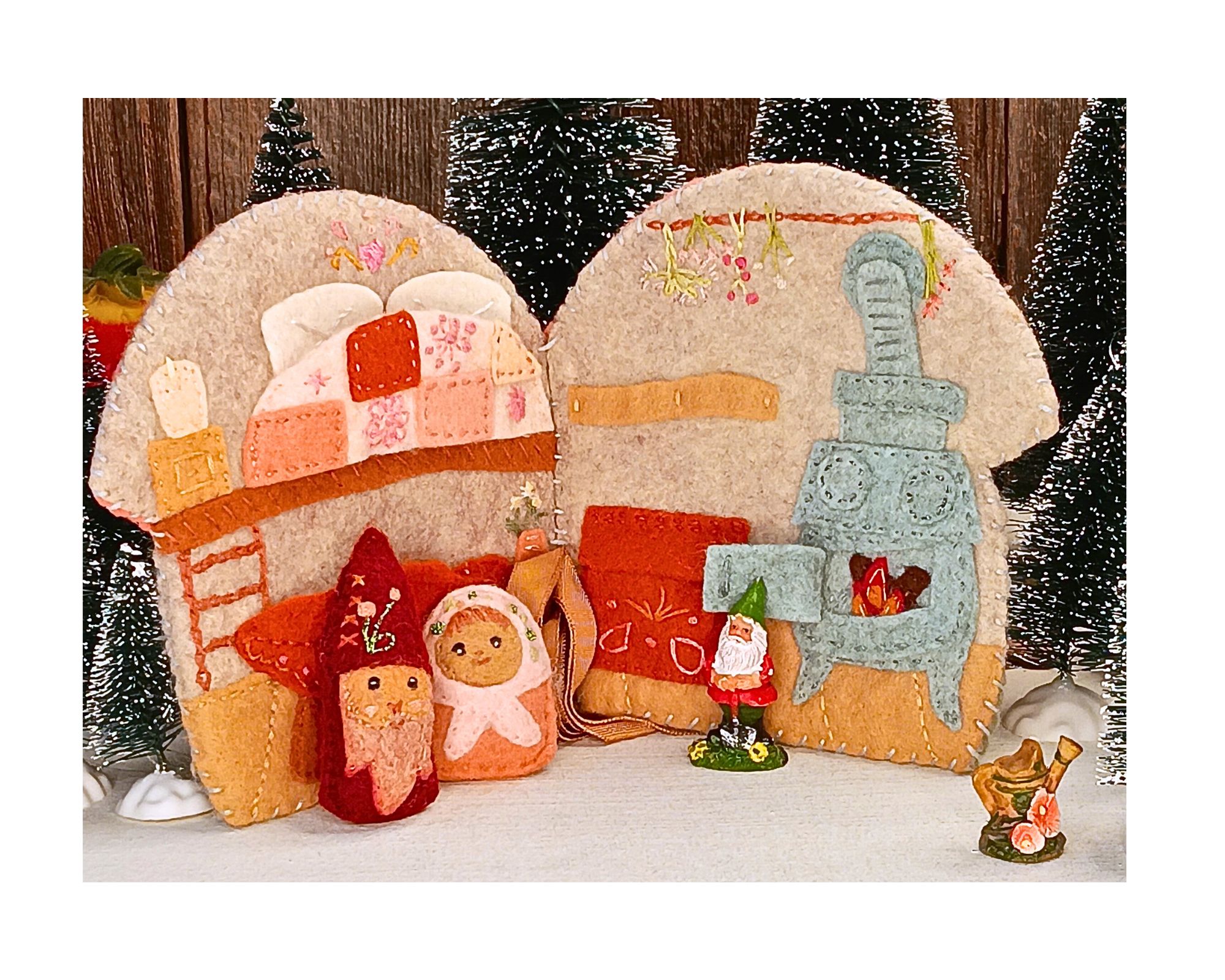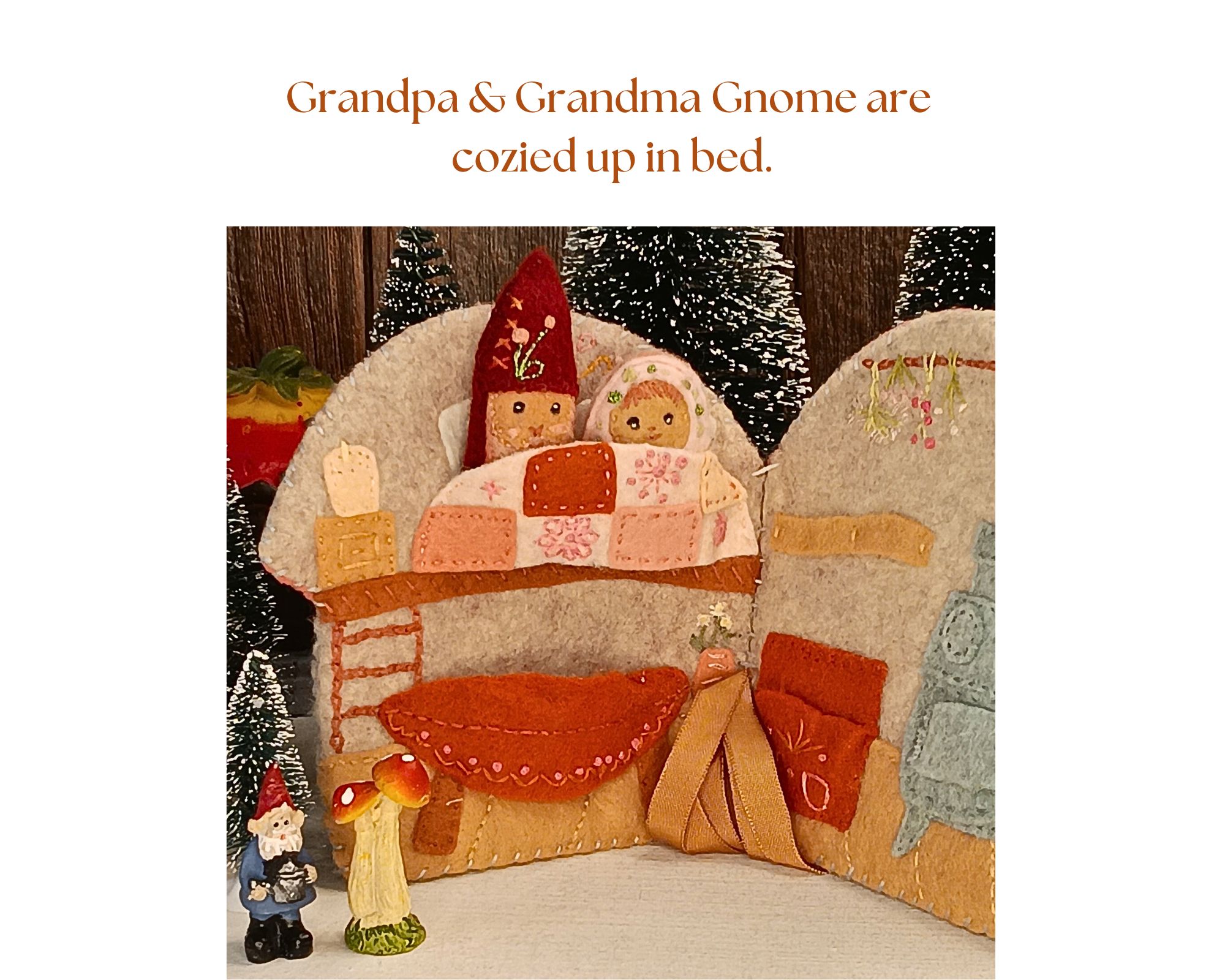 Hand embroidered and entirely handmade, this whimsical little home welcomes you into the cozy world of Grandpa and Grandma Gnome.