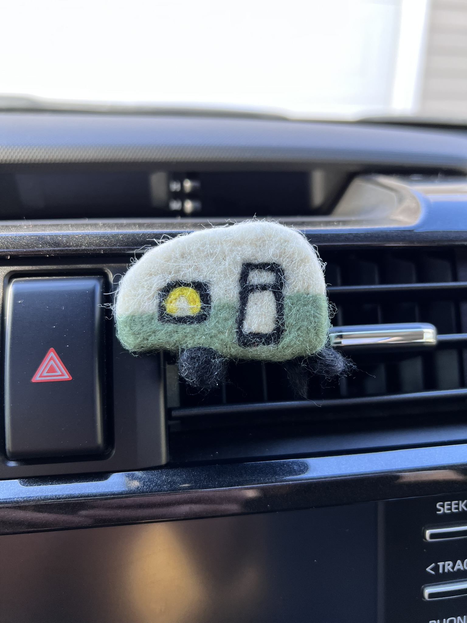 Made from 100% wool, this handmade needle felted camper makes a great car or truck decoration. Essential oils can be added to make your vehicle smell grand. A clip is already attached, adds fun on your travels and can smell great too.