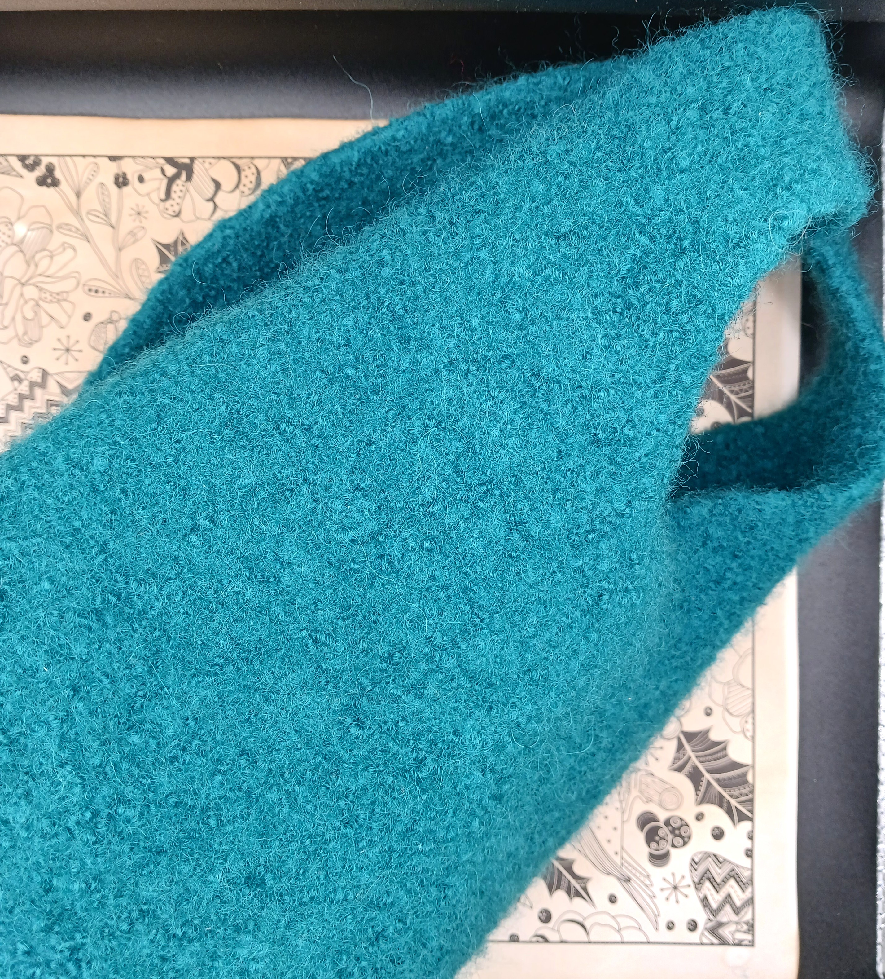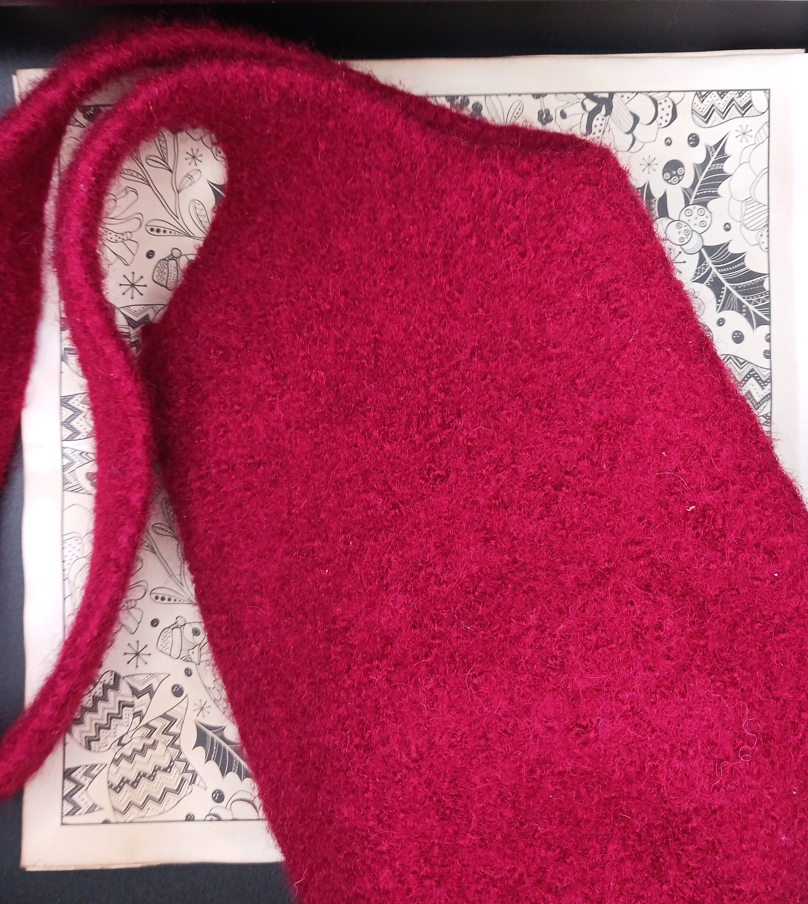 These cute pear shape felted bags well be ready for the holidays. There will be 2 available, Hollyberry red and Spruse blue.