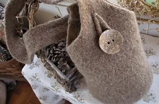 Using 100% Peruvian Highland Wool, from Knit Picks. Following the pattern, I knitted the bag and then felted. The 2 bags I have not added the big button, they are nice without hardware, so holding off adding until I get a request. Send message if interested. These bags can be needled felted with all kinds of added designs, would be fun to do!