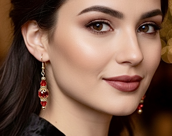 Whether you're attending a gala, a festive holiday celebration, or a romantic dinner, these earrings catch the light with every movement, framing your face with a warm, luxurious glow.