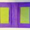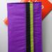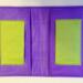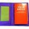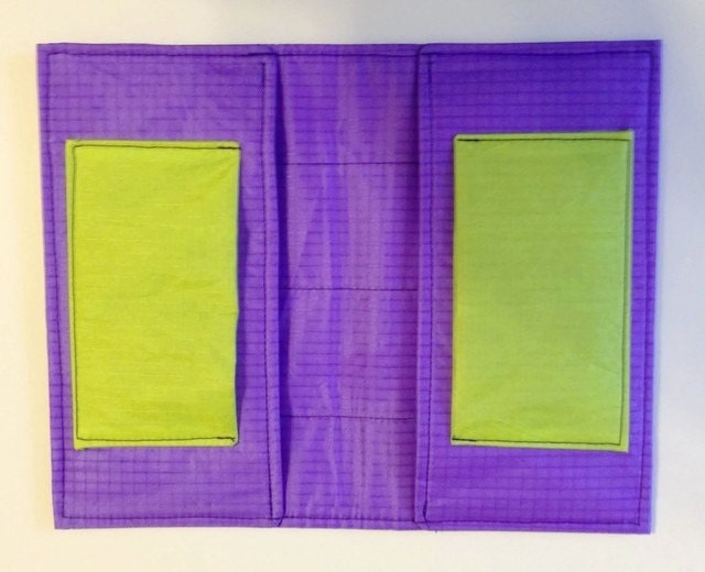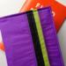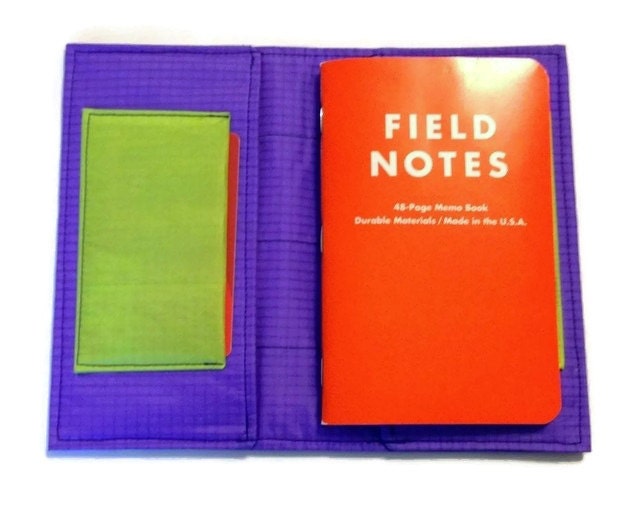 Bold color scheme is deep purple, chartreuse, and black. Holds one or two memo booklets.