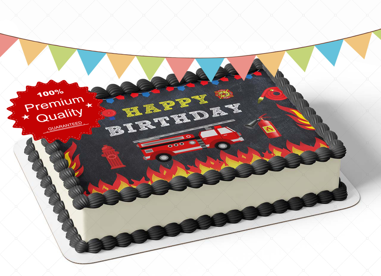 Firetruck Fire Rescue Kids Boys Firefighter RFT Edible Image Themed Edible Birthday Party Cake Topper Sheet Edible Sticker Decal