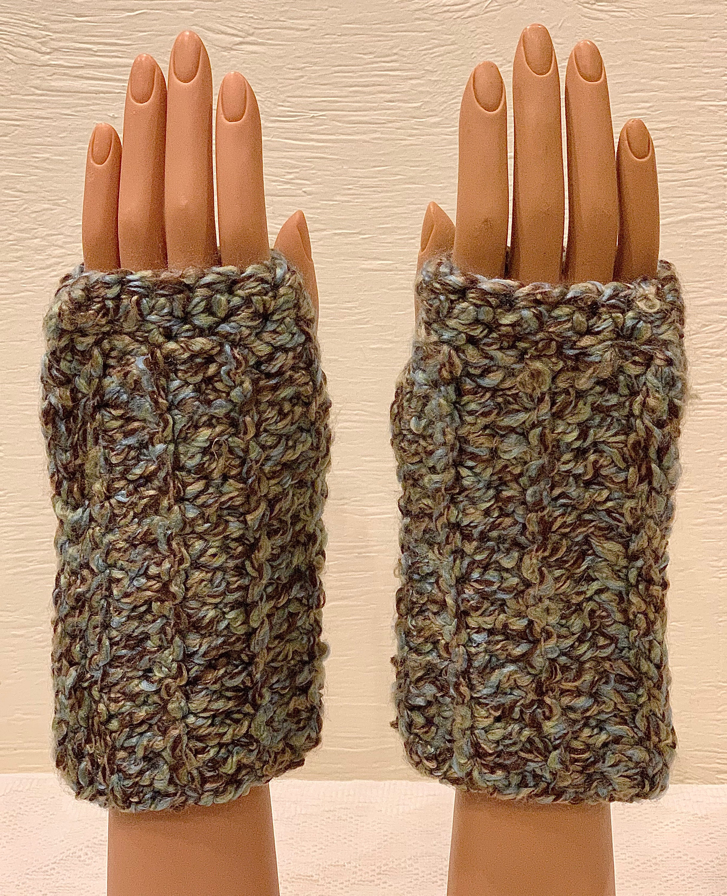 These fingerless mittens are suitable for both outdoor and indoor use. They are stylish and cozy, coordinating beautifully with my eternity scarves and other crocheted creations (hats, headbands, clip-on flowers, and more).