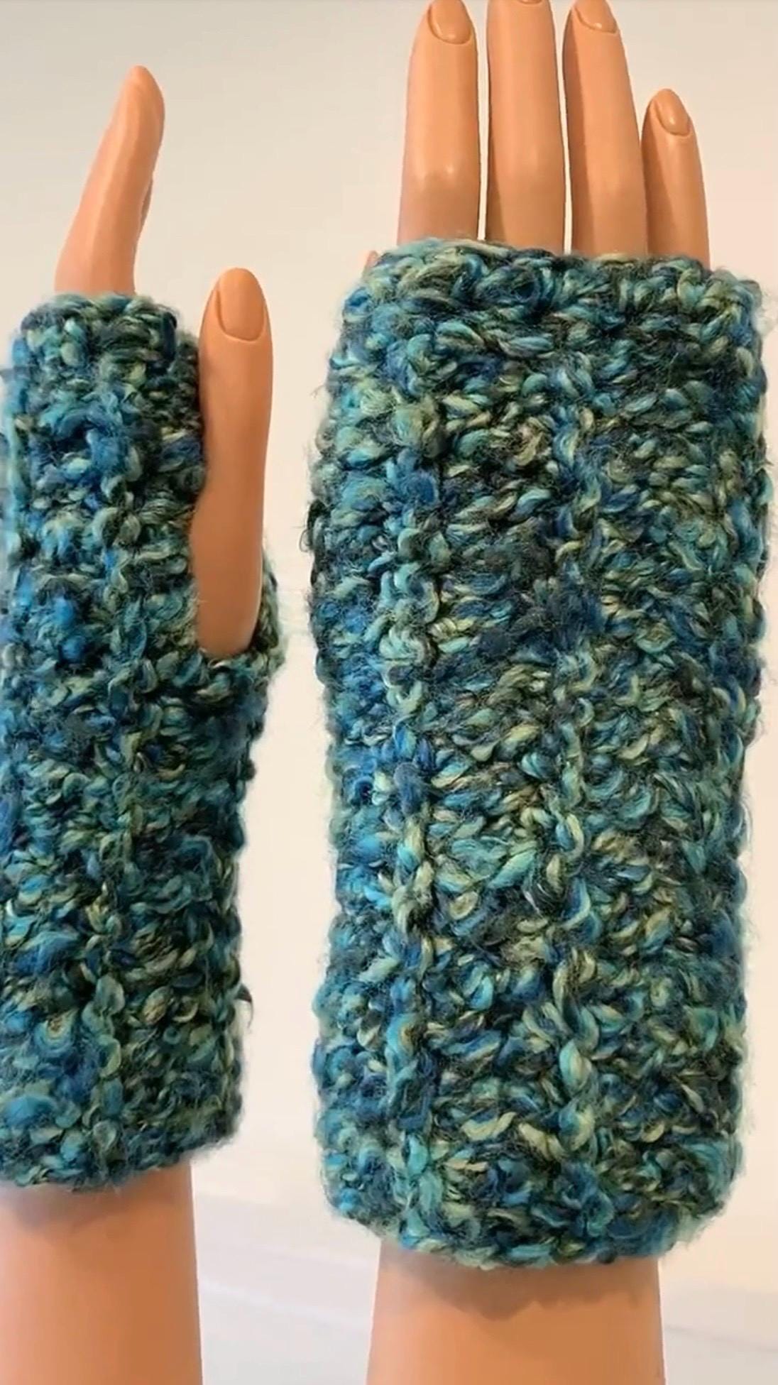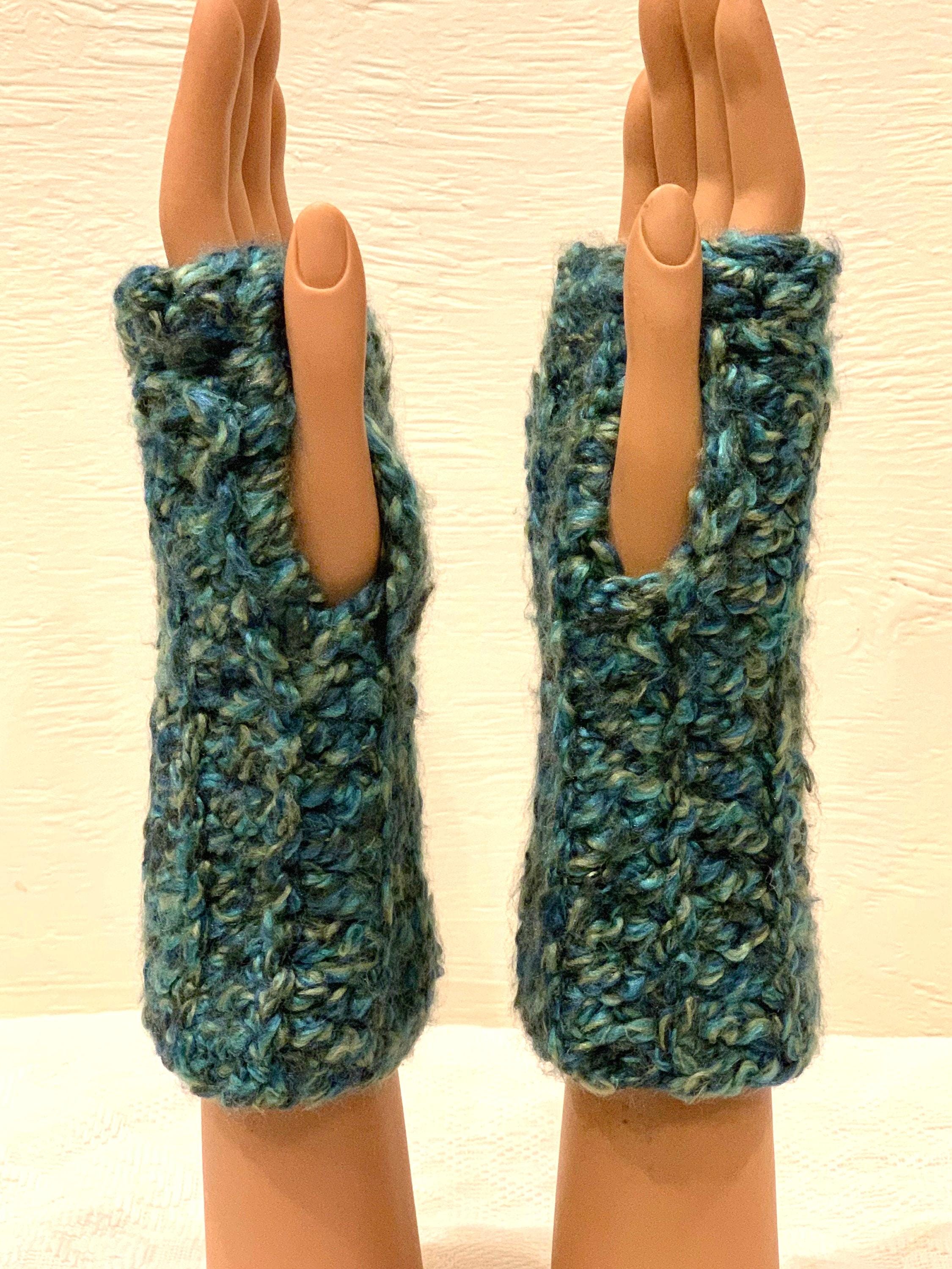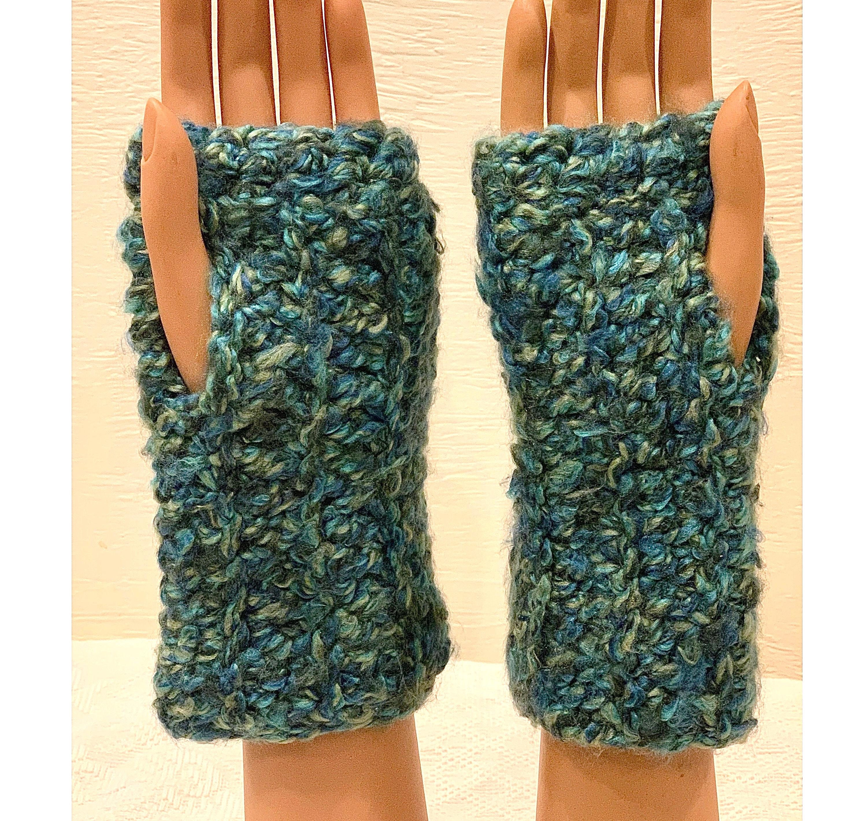 These fingerless mittens are suitable for both outdoor and indoor use. They are stylish and cozy, coordinating beautifully with my eternity scarves and other crocheted creations (hats, headbands, clip-on flowers, and more).