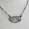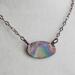 Turn heads wearing this one-of-its-kind necklace. Featuring a flame colored oval copper pendant on copper chain, this 16 inch choker length necklace is perfect for layering or wearing alone. The iridescent colors dance across the copper pendant, shimmering and changing with every direction of light.