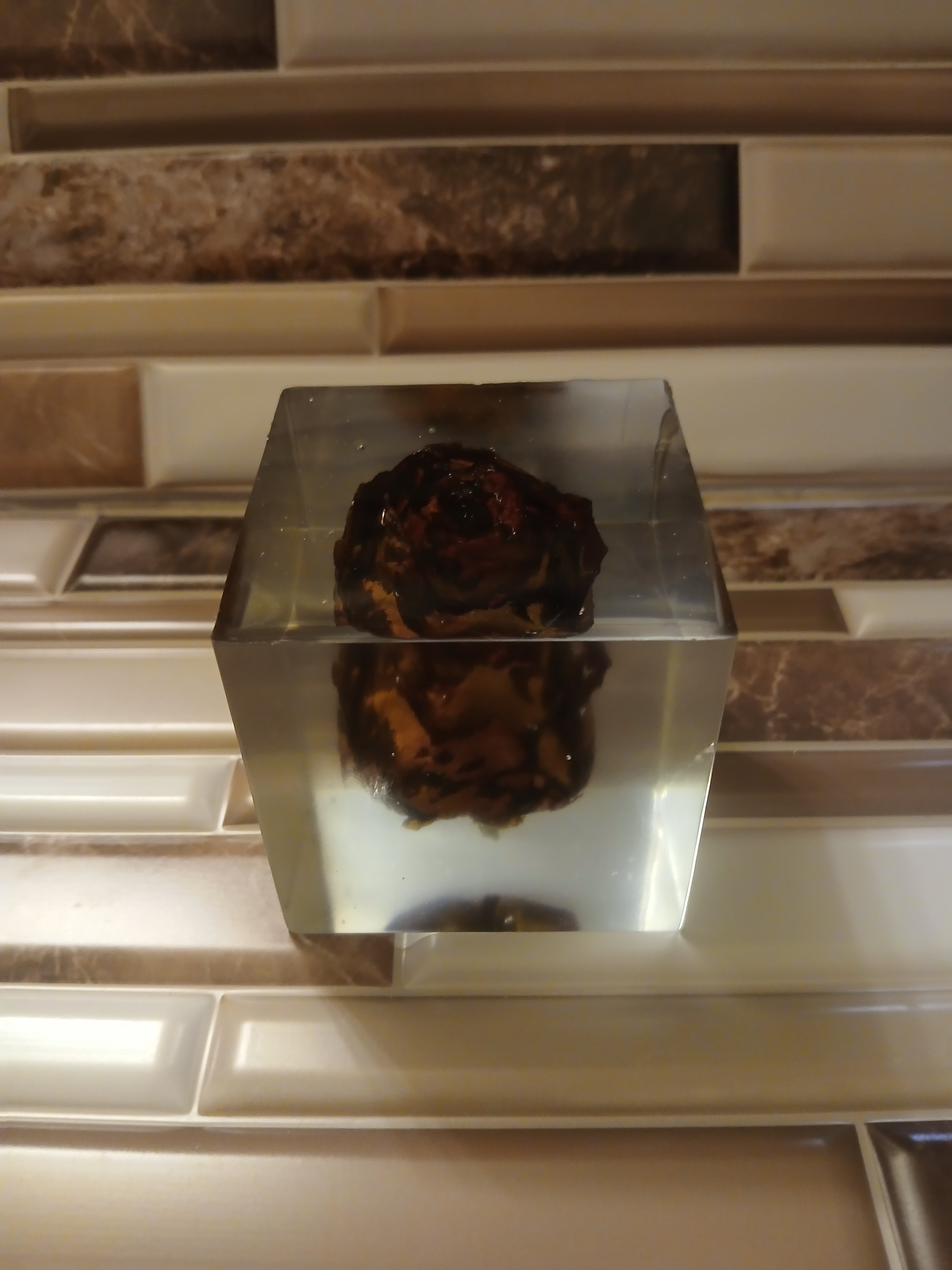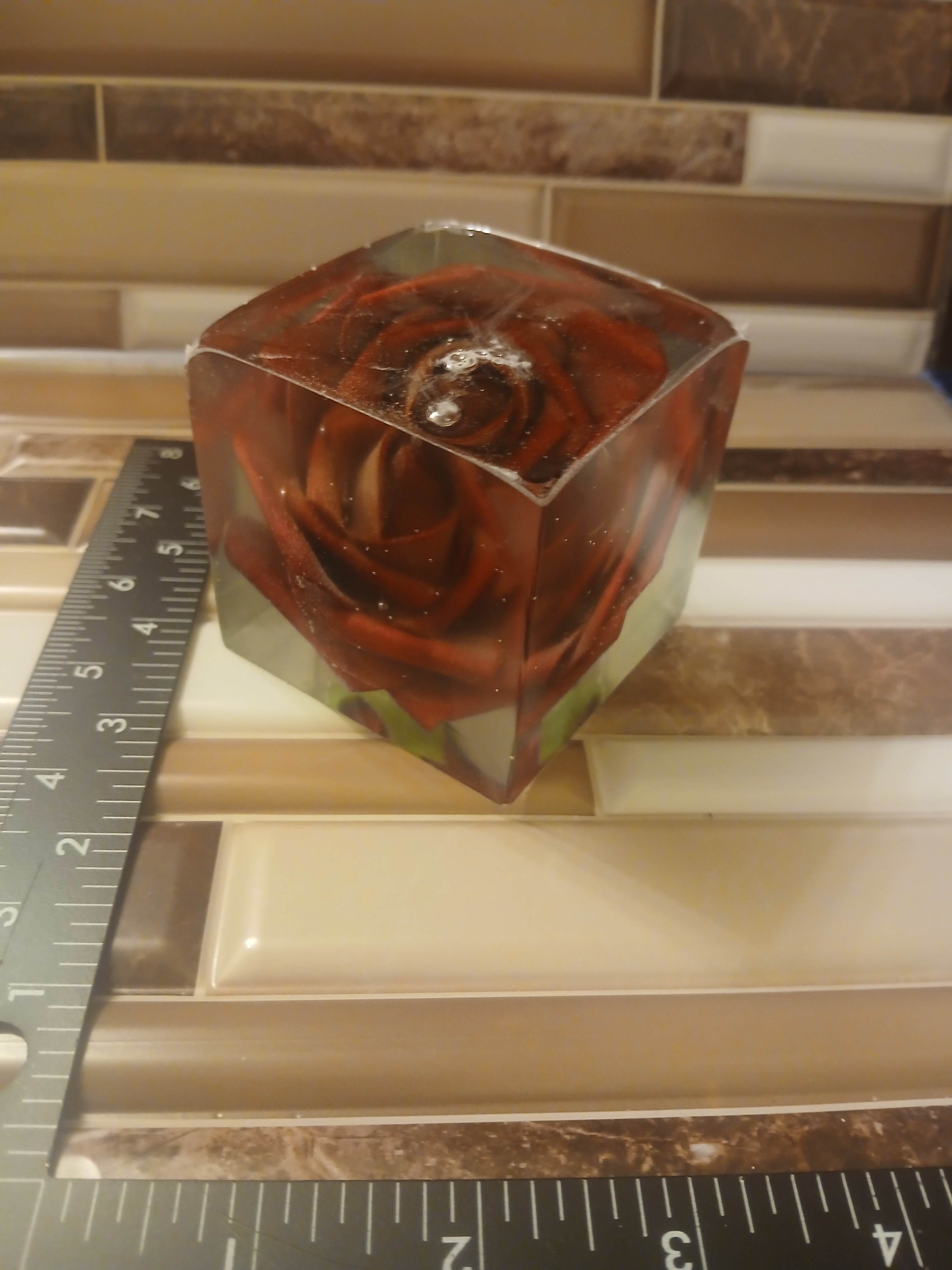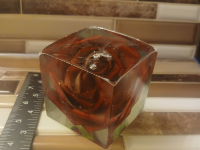 Regular flowers don't last so how about encasing in Resin? Or Choose a fake rose comes in red dark pink light pink peach or burgundy you can even add some glitter. If you want live $5 more