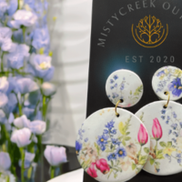 At Misty Creek Outpost every handcrafted statement button, Earring, Necklace, bookmark, Hair barrettes, cabochon and pendant you see is the exact item you will receive. Each piece is meticulously crafted using layered clay, gold foil, and UV resin or Varnish ensuring vibrant, one-of-a-kind designs. Due to the artisanal nature of our techniques, every product is given its own individual product listing.