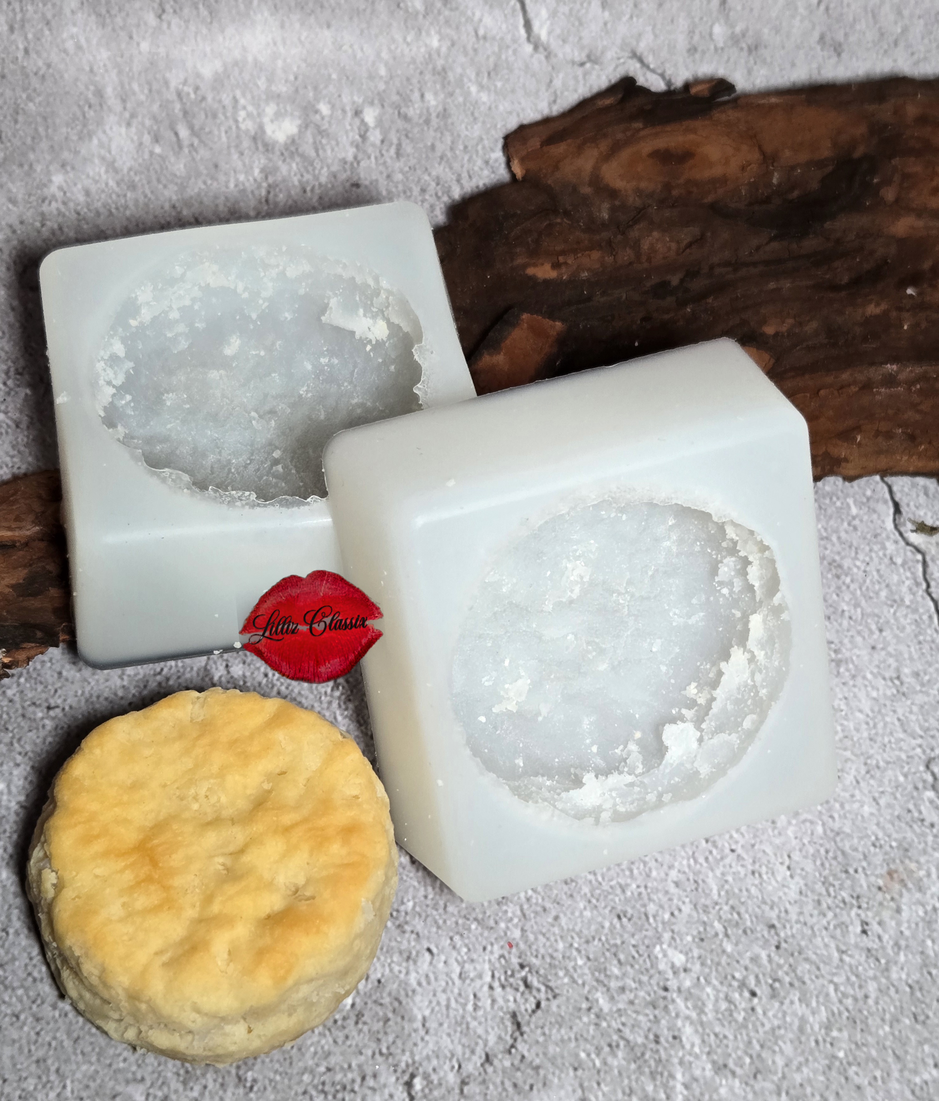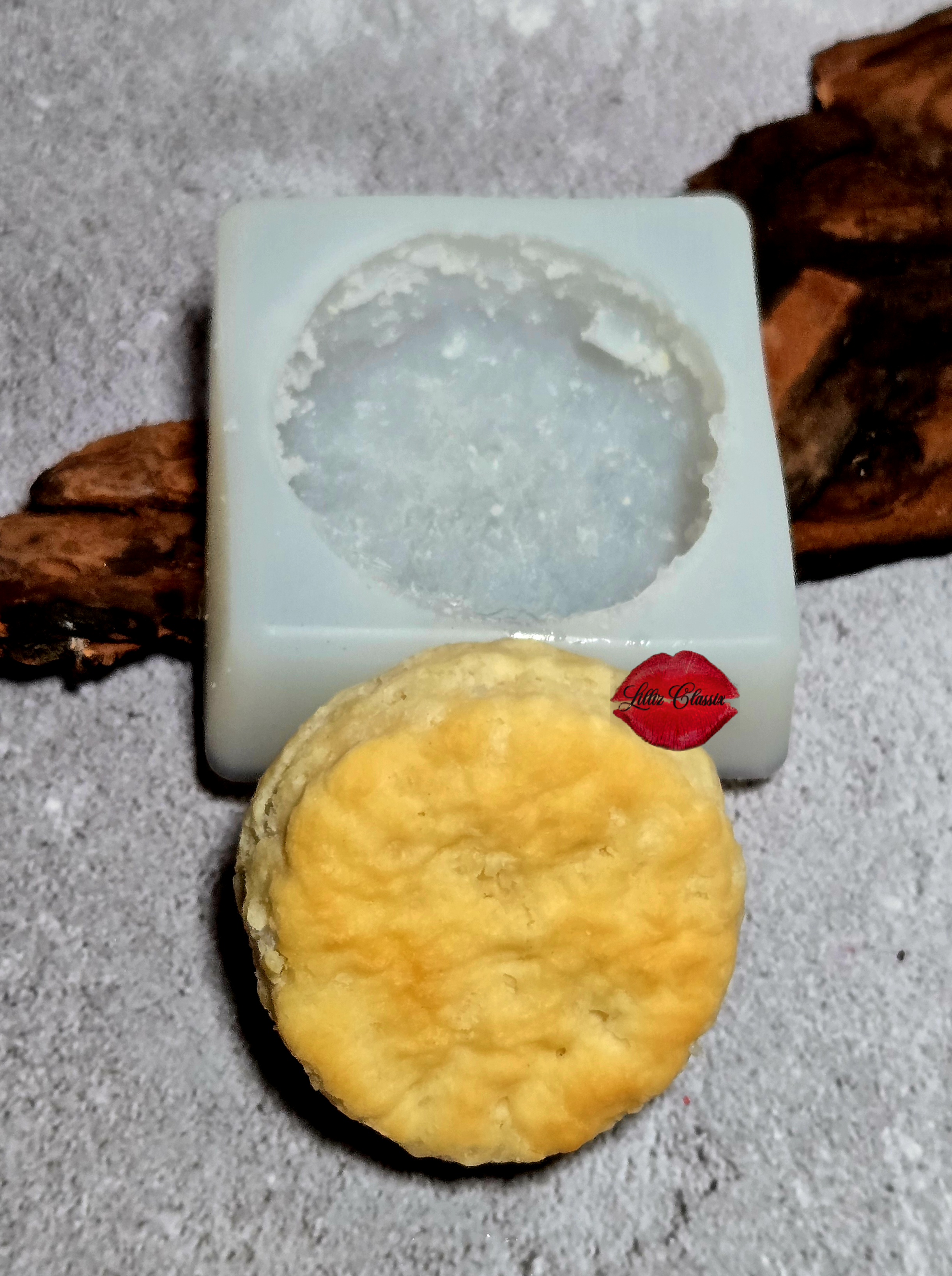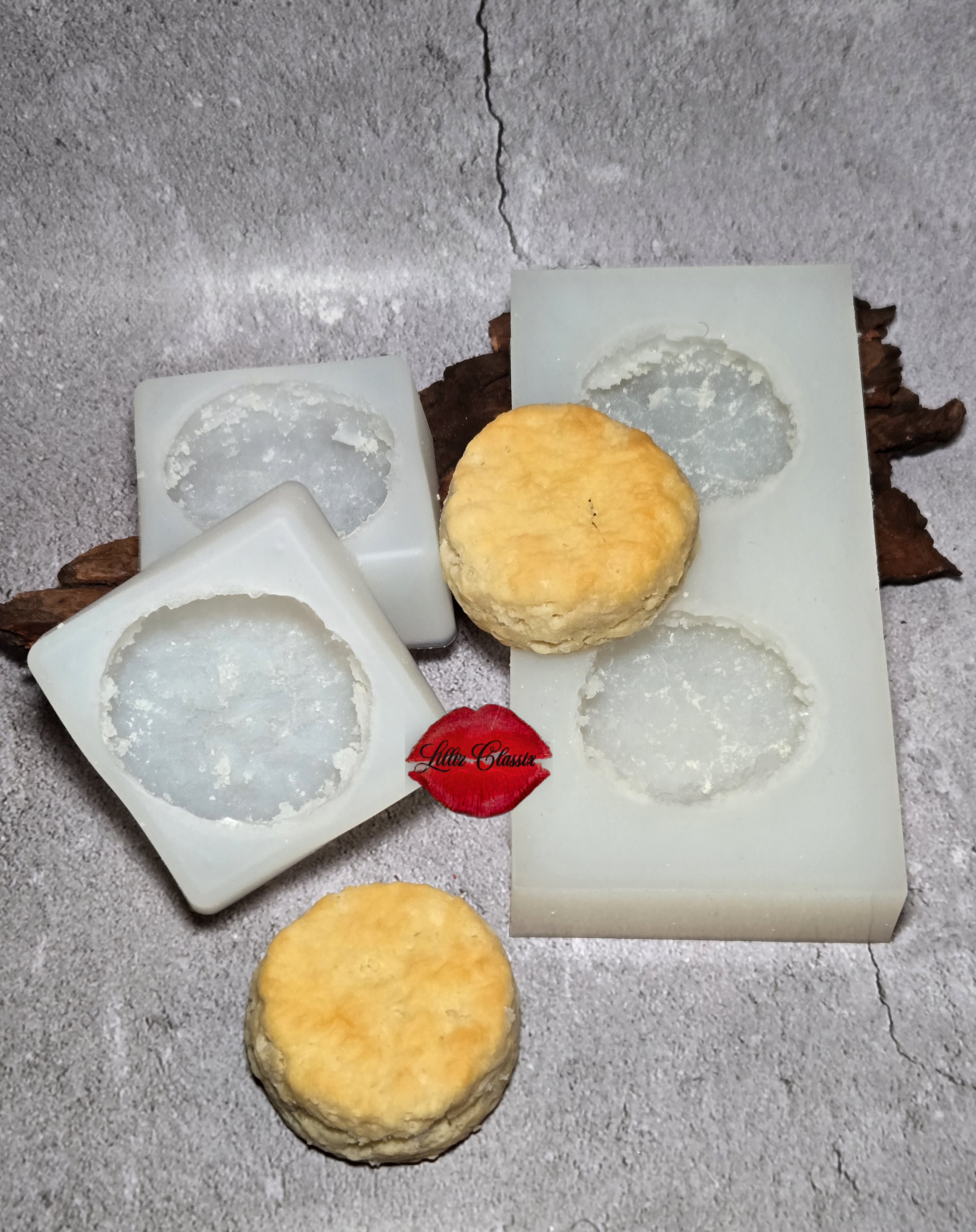 This mold was created using a realistic biscuit as the master. The biscuit was carefully positioned inside a mold box to ensure proper spacing and alignment. A high-quality, flexible liquid silicone rubber was then mixed and slowly poured over the biscuit to capture its natural texture, shape, and layered details. Once fully poured, the silicone was left to cure undisturbed until set. After curing, the mold was removed from the mold box and the original biscuit was released, leaving a durable, reusable silicone mold with a detailed cavity, ideal for wax melts, embeds, soaps, and other craft applications. Not suitable for food.