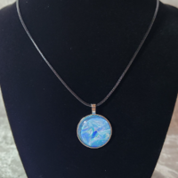 Fluid art necklace. Blue/Teal collection with an 18" black cord necklace. Composition varies. Silver and Bronze settings available.