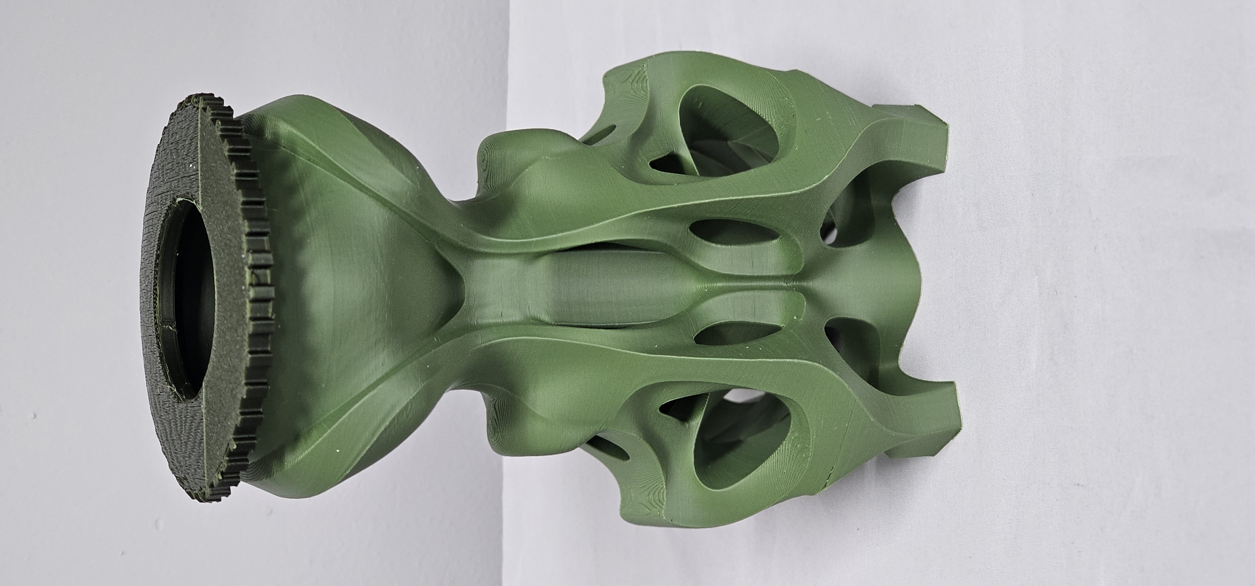 This table lamp is 3D printed and ready for your LED bulb. It is designed by Modern Machine. Lamp base stands approximately 7 inches high. Lamp base is 3D printed in a green color. Only use and LED bulb with this lamp.
