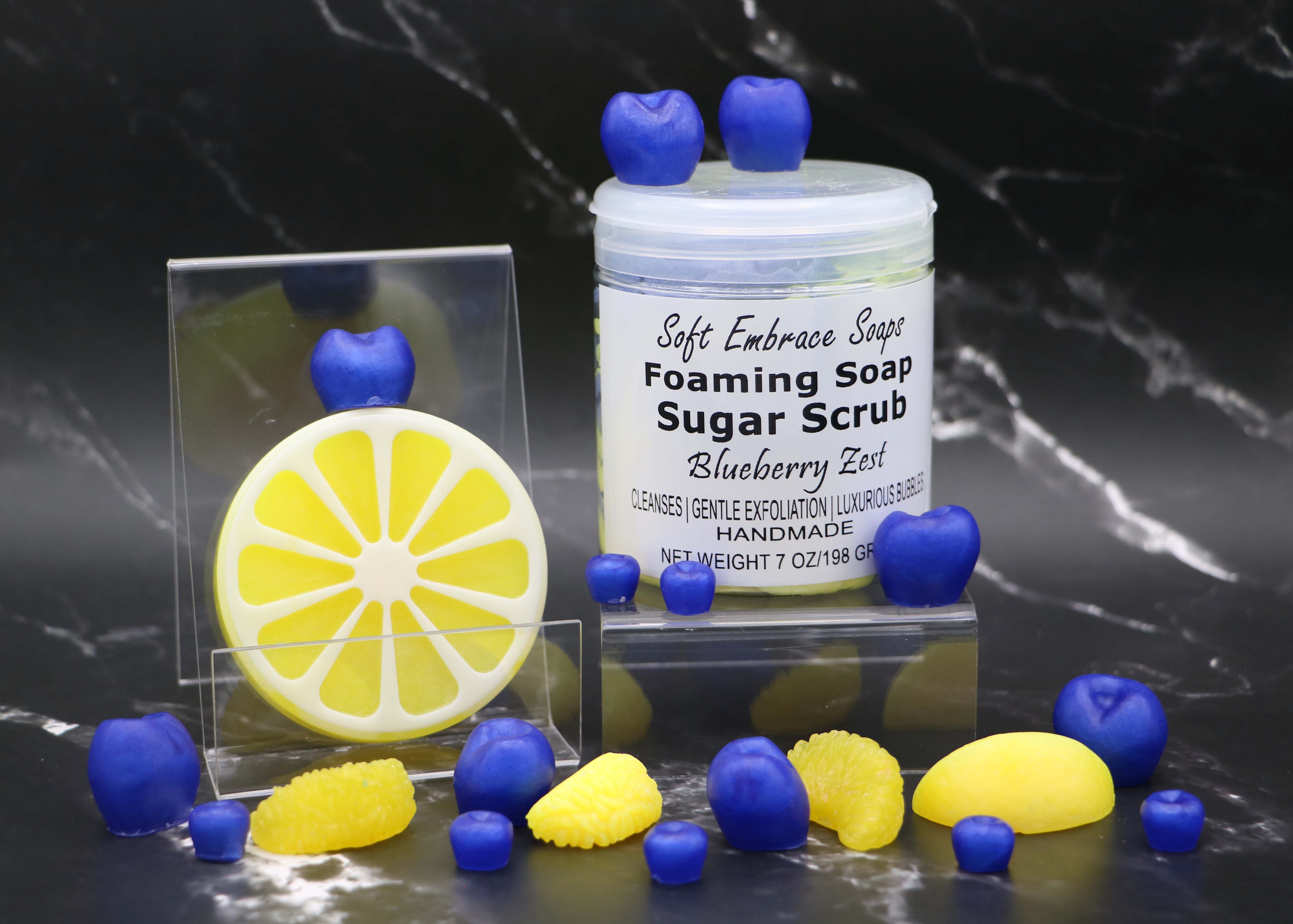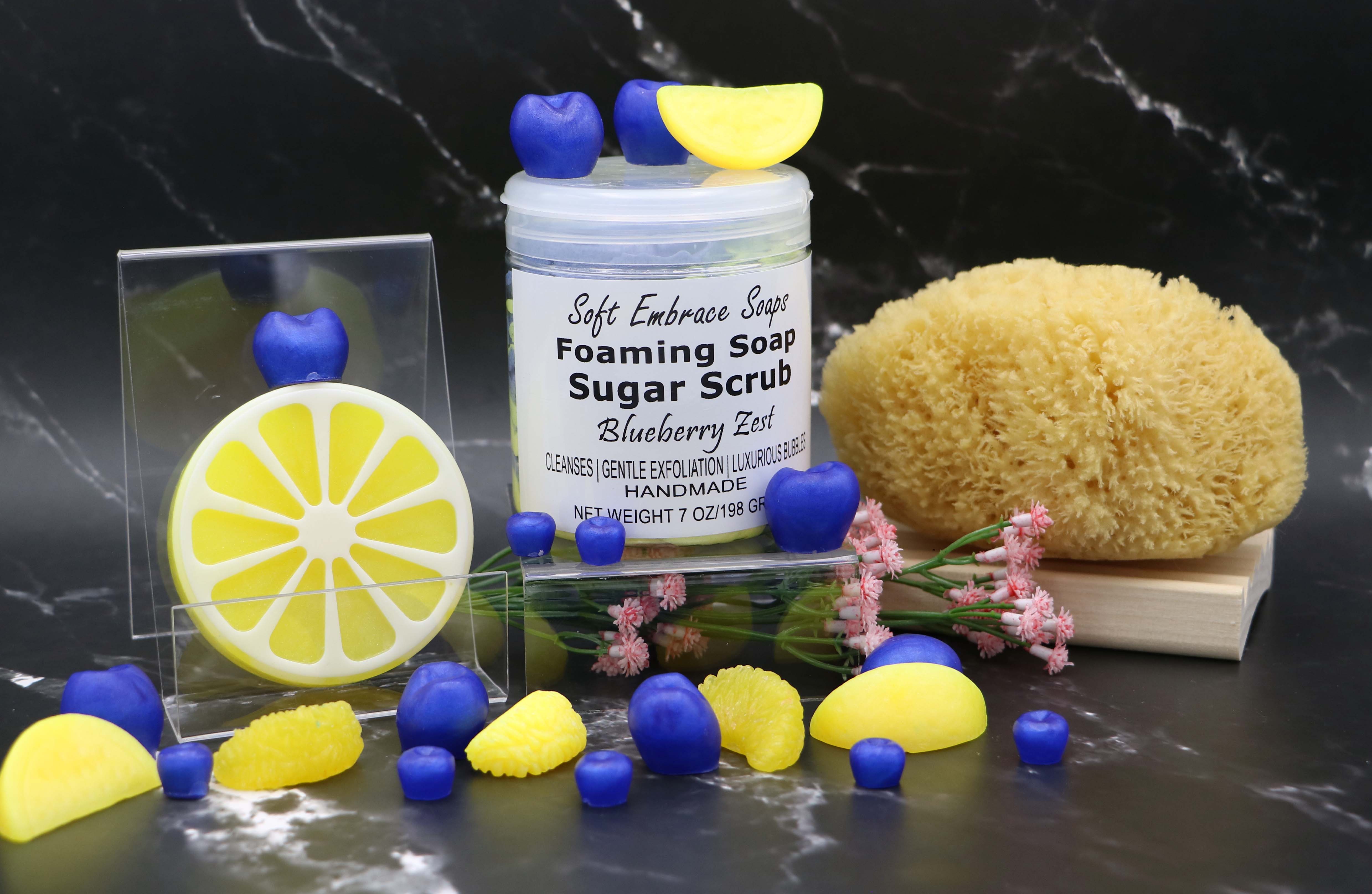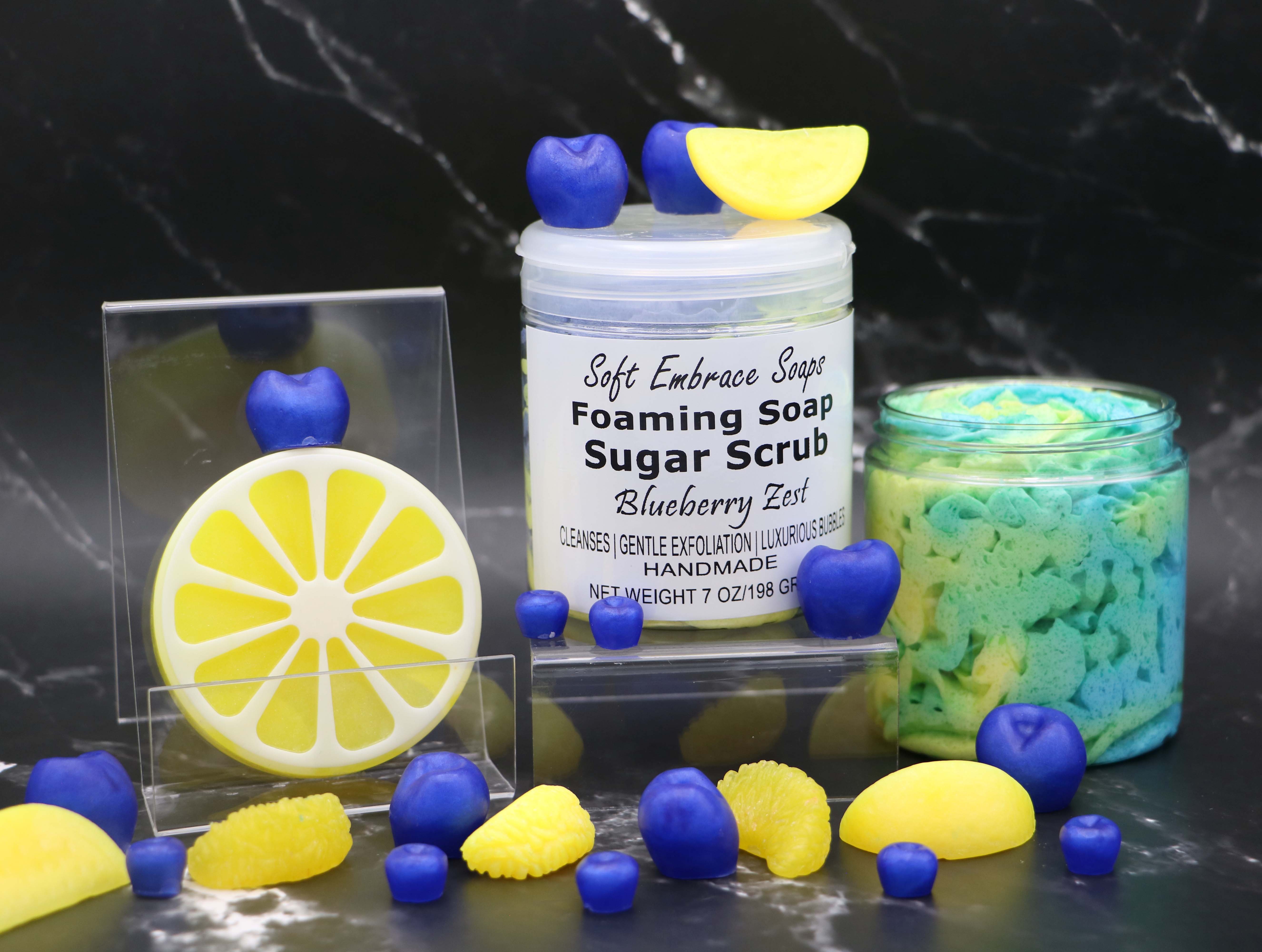 Choose from a total of 57 fragrances and 16 color combinations of Foaming Soap Sugar Scrubs within my shop.