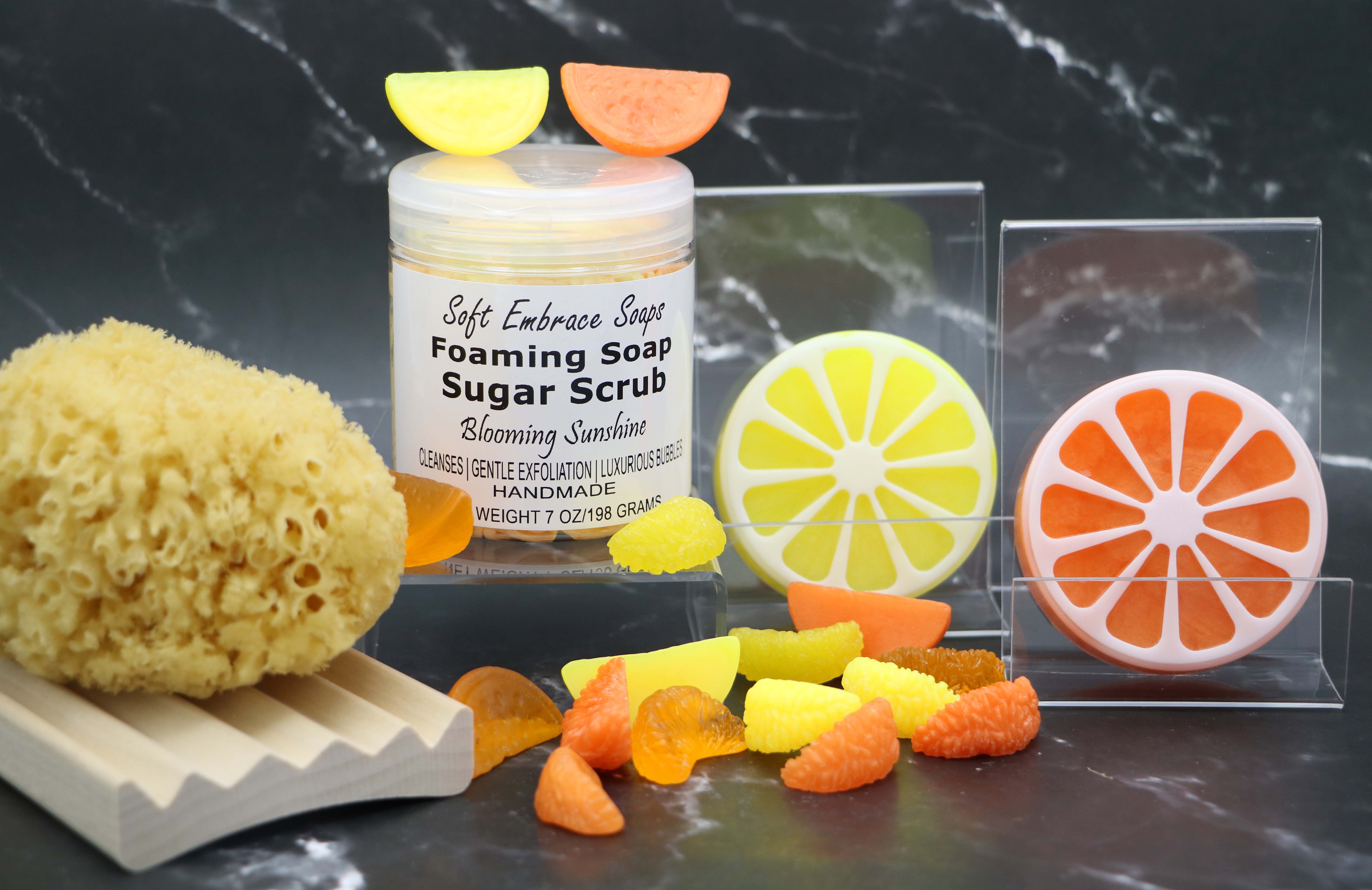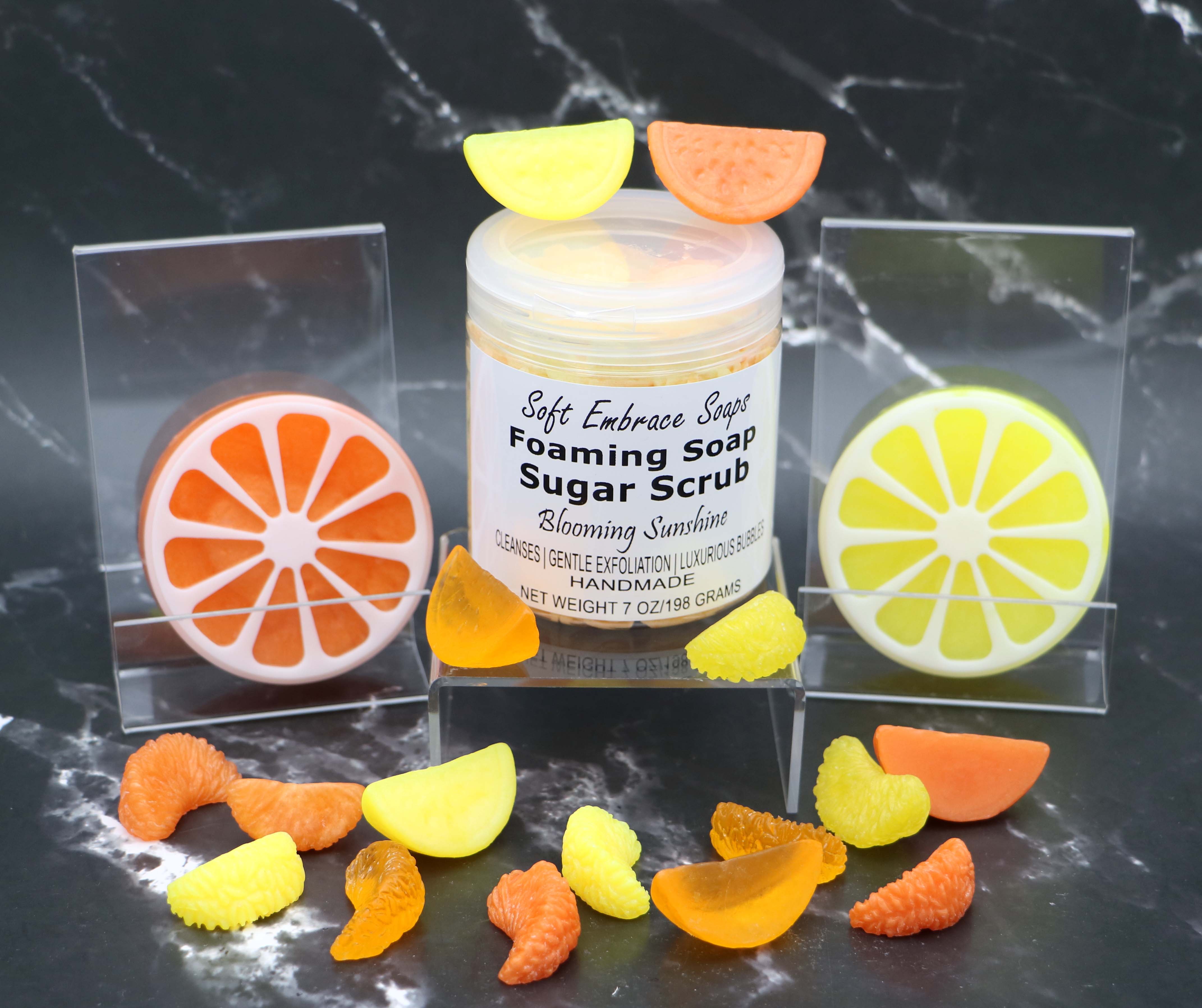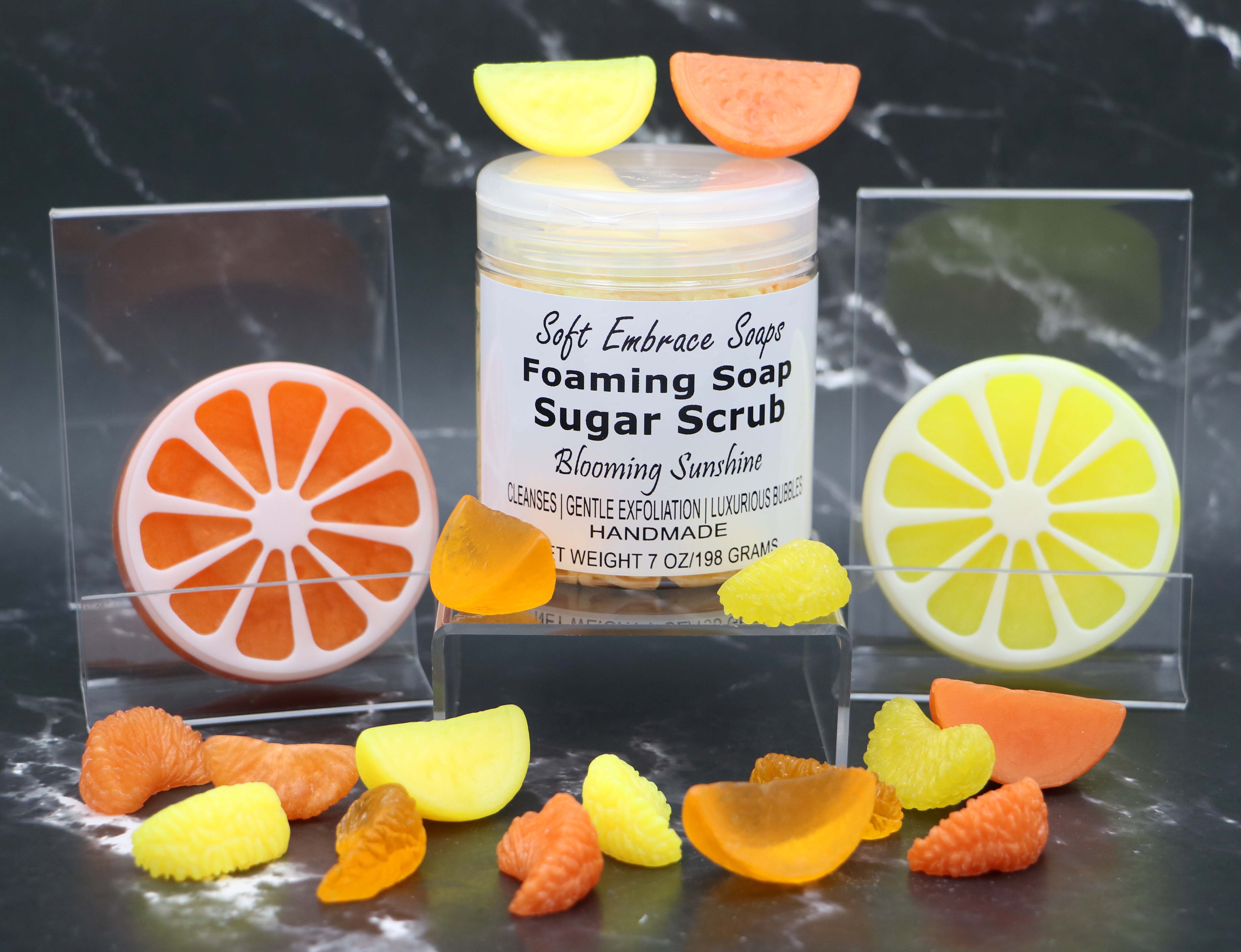 Choose from a total of 57 fragrances and 16 color combinations of Foaming Soap Sugar Scrubs within my shop.
