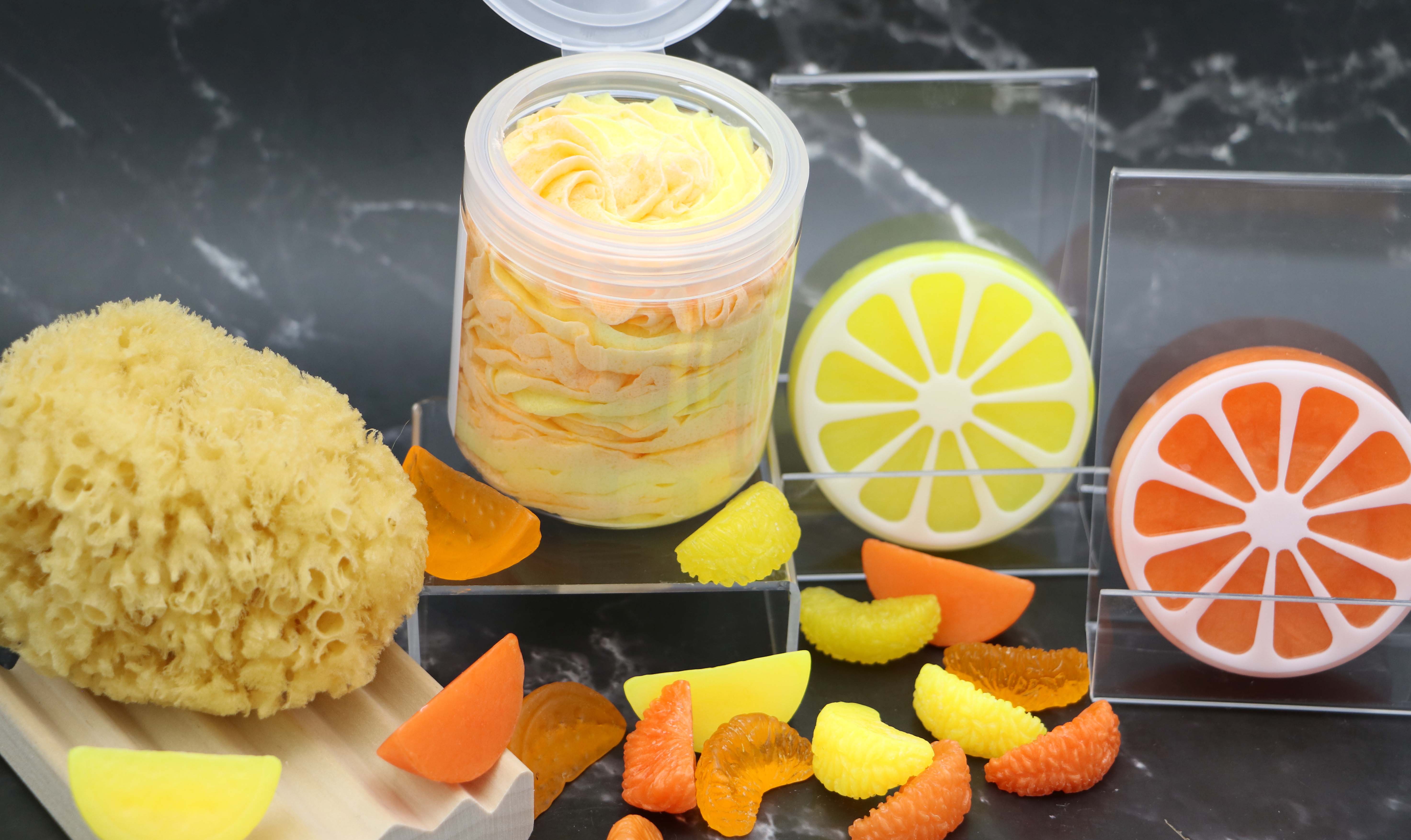 This Yellow & Orange colored scrub features an all-natural fragrance oil crafted from California lemons and sweet oranges. The vibrant citrus notes awaken your senses, offering an uplifting, refreshing boost to start your day with positivity.