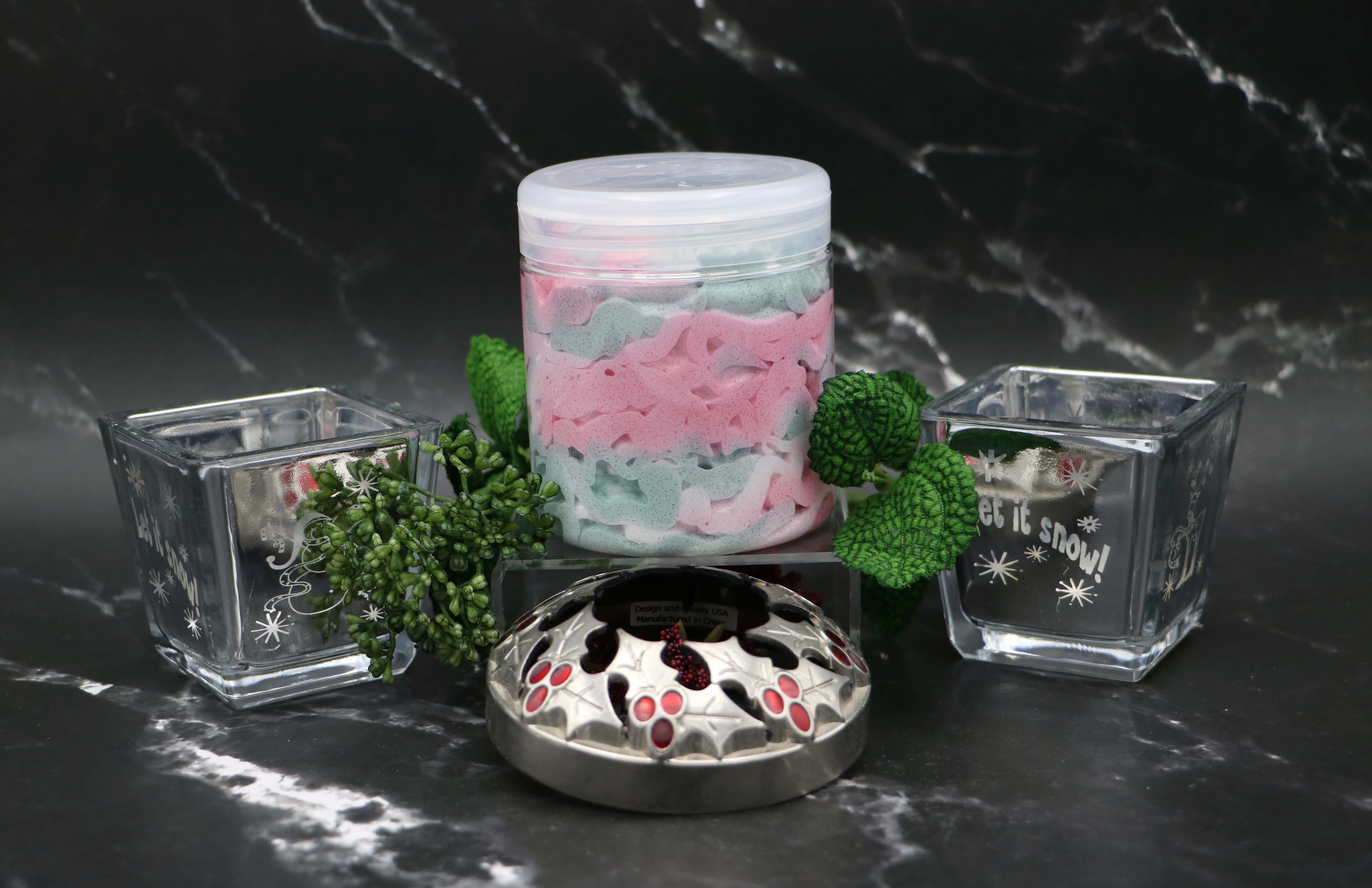 "Holiday Confection"- captures the magic of a winter morning--crisp, sweet, and warmly festive. Cool notes of morning frost and candied peppermint bring a refreshing sparkle, while cinnamon sticks add a cozy, spicy warmth. A touch of spruce rounds everything out with a fresh, woodsy finish, creating a fragrance that feels like stepping into a snowy holiday kitchen filled with treats & twinkling cheer.