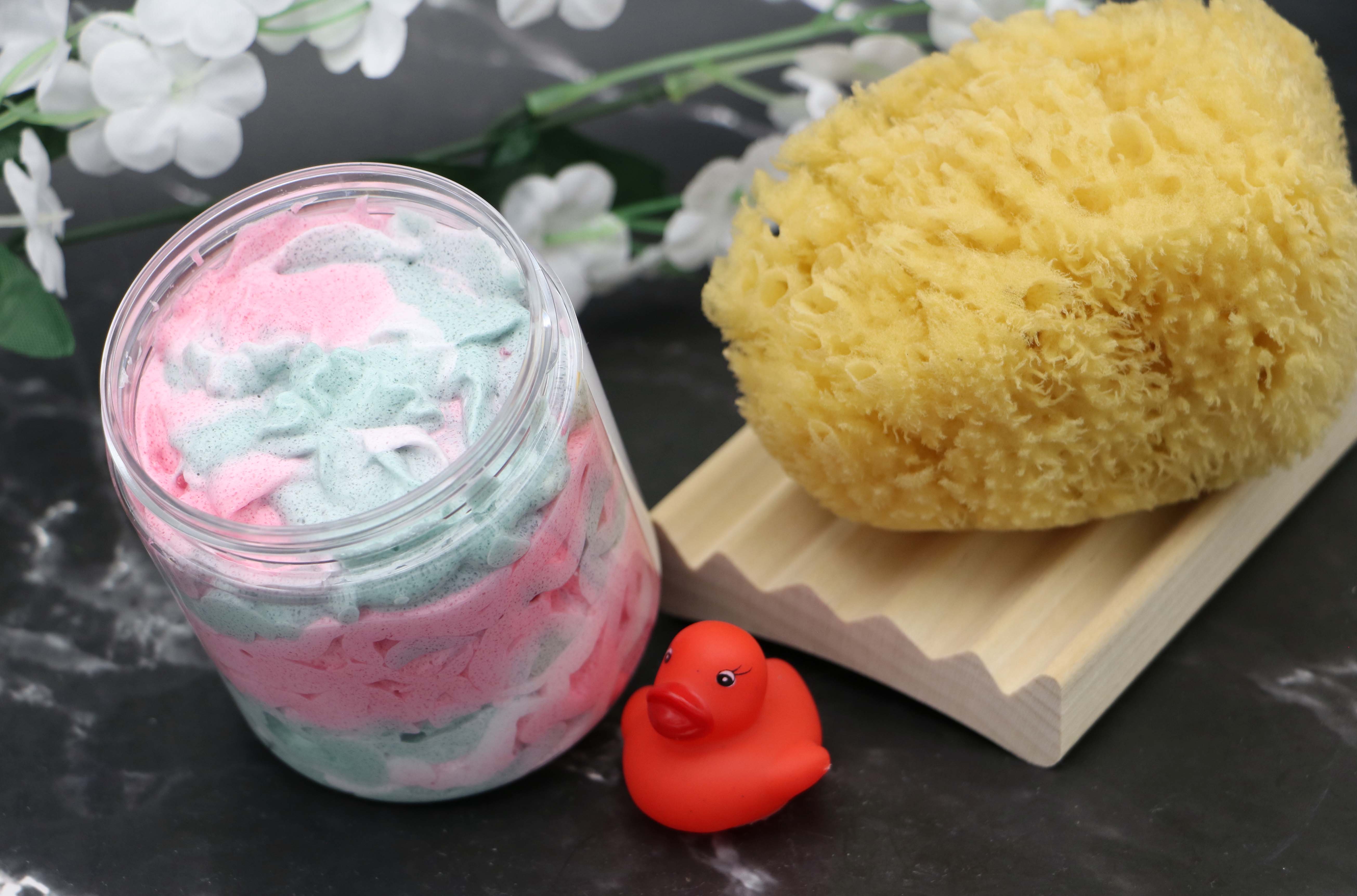 Two products in one – A creamy whipped soap + gentle sugar exfoliant